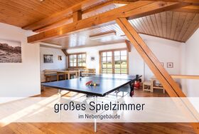 Als Treffpunkt dient das große Spielzimmer. Hier werden Tischkicker und Tischtennis gerne gespielt. Im Sommer ist der Außenbereich gefragt: unser Spielplatz mit Trampolin und Tretfahrzeugen ist heiß begehrt, die Erwachsenen genießen ihren Kaffee an der angrenzenden Grillhütte.