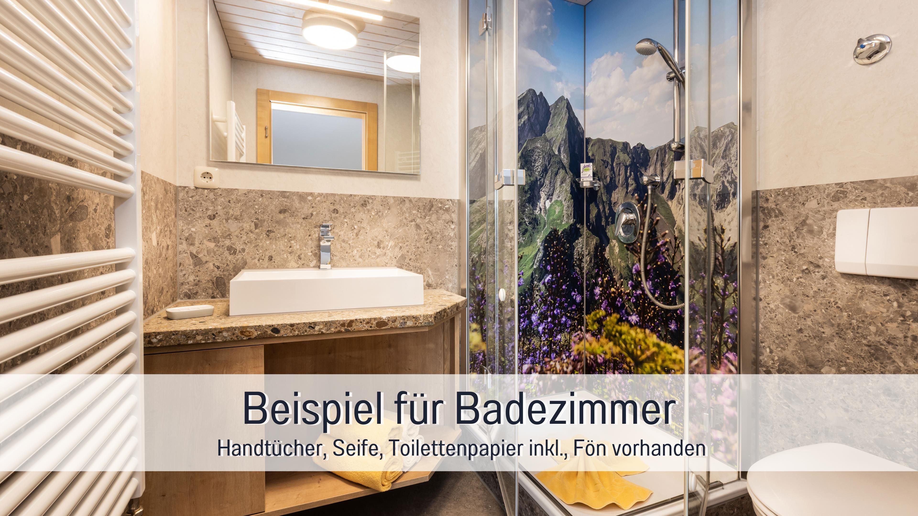 • Badezimmer mit Dusche (Motiv variiert), Fön vorhanden