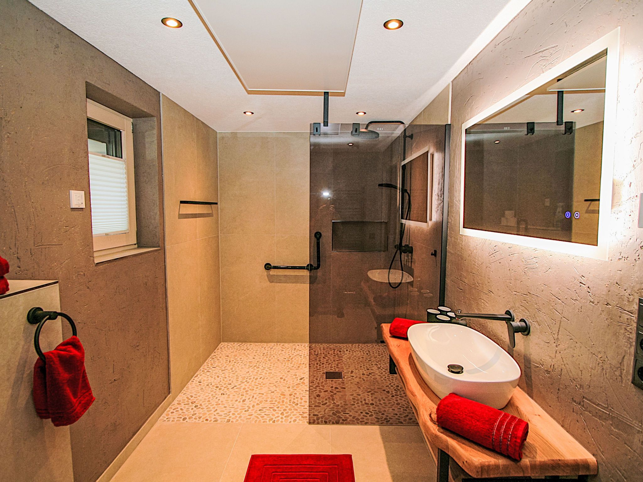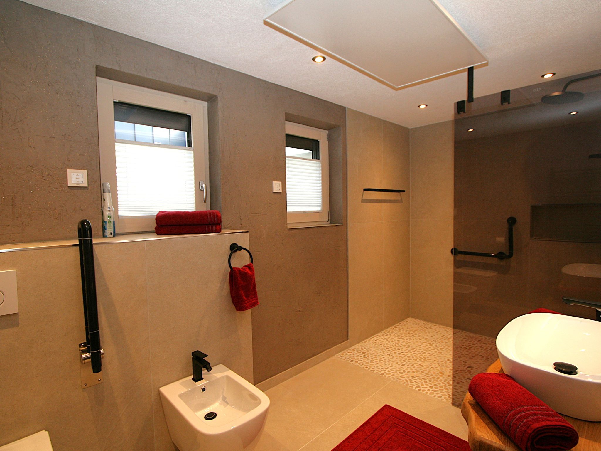 Ingrid, 3-Zimmer-Wohnung im Erdgeschoss. Sehr geschmackvoll und gemütlich eingerichtet: 2 Doppelzimmer, jedes Zimmer mit Sat-TV (Flachbildschirm), elektrischem Rollladen. Wohn-/Esszimmer mit 1 Doppeldiwanbett und Esstisch. Küche (Backofen, Geschirrspüler, 4 Glaskeramikplatten, Toaster, Wasserkocher, Mikrowelle, elektrische Kaffeemaschine) mit G-Heizung. Dusche/WC, Bidet, sep. WC. G-Heizung. Terrasse. Terrassenmöbel, Gartengrill, Abstellkammer. Herrliche Sicht auf die Berge. Zur Verfügung: Safe, Fliegengitter. Internet (WLAN, gratis). Bitte beachten: Nichtraucher-Haus.