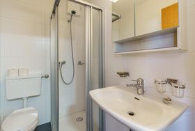 Von Ihrem Balkon genießen Sie einen atemberaubenden Blick auf die beeindruckende Berglandschaft der Region. Das Badezimmer ist mit einer Dusche und einem WC ausgestattet.