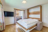 Die 65 m² große Ferienwohnung im Haus Slalom bietet Platz für bis zu 4 Personen und umfasst zwei Schlafzimmer mit Doppelbetten. Ein Kleinkind kann ebenfalls untergebracht werden.