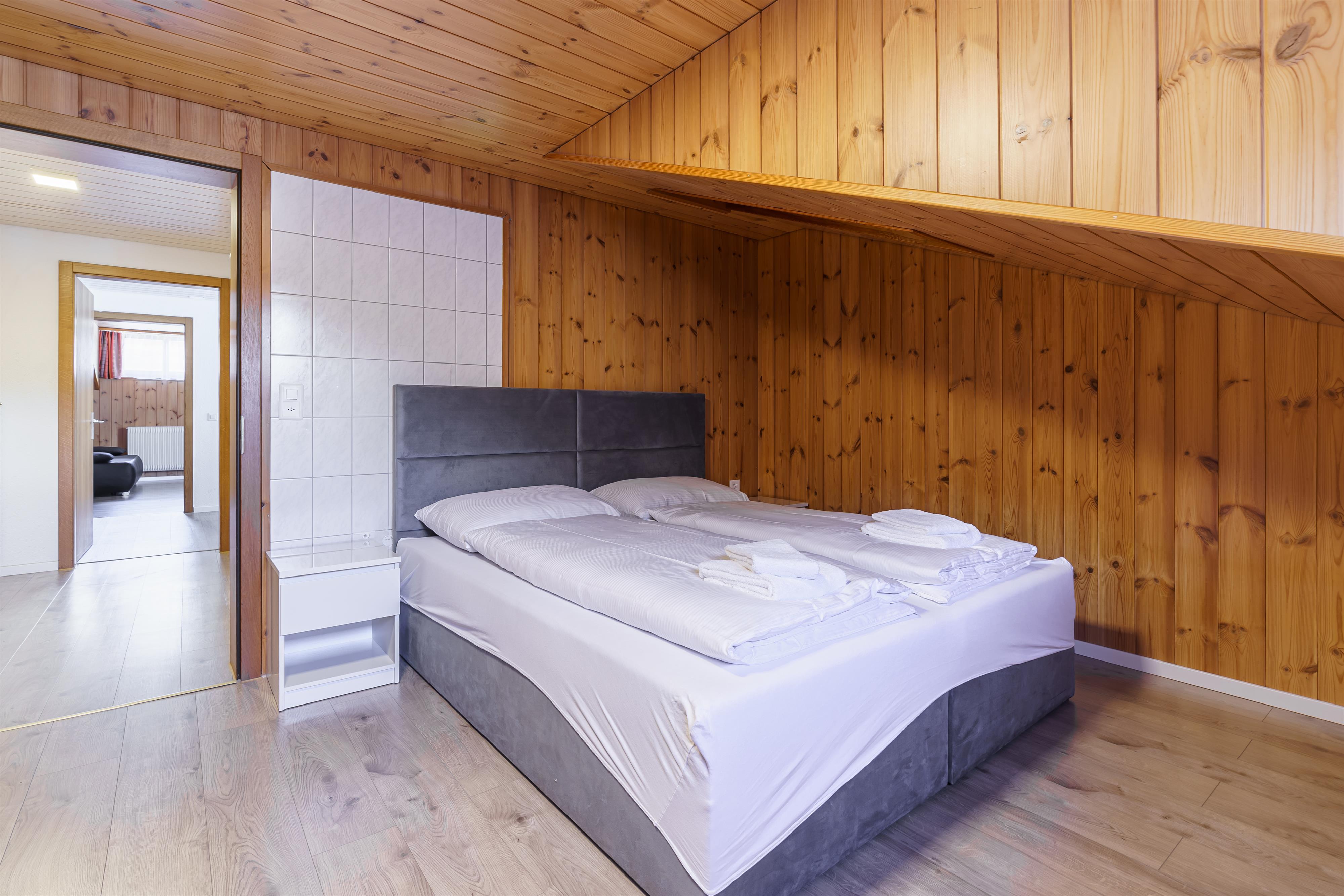 Die 65 m² große Ferienwohnung im Haus Slalom bietet Platz für bis zu 6 Personen und besteht aus zwei Schlafzimmern mit Doppelbetten sowie einem Schlafsofa für 2 Personen im Schlafzimmer. Ein Kleinkind kann ebenfalls problemlos untergebracht werden.