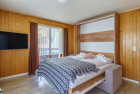 Die 65 m² große Ferienwohnung im Haus Slalom bietet Platz für bis zu 4 Personen und umfasst zwei Schlafzimmer mit Doppelbetten. Ein Kleinkind kann ebenfalls untergebracht werden.
