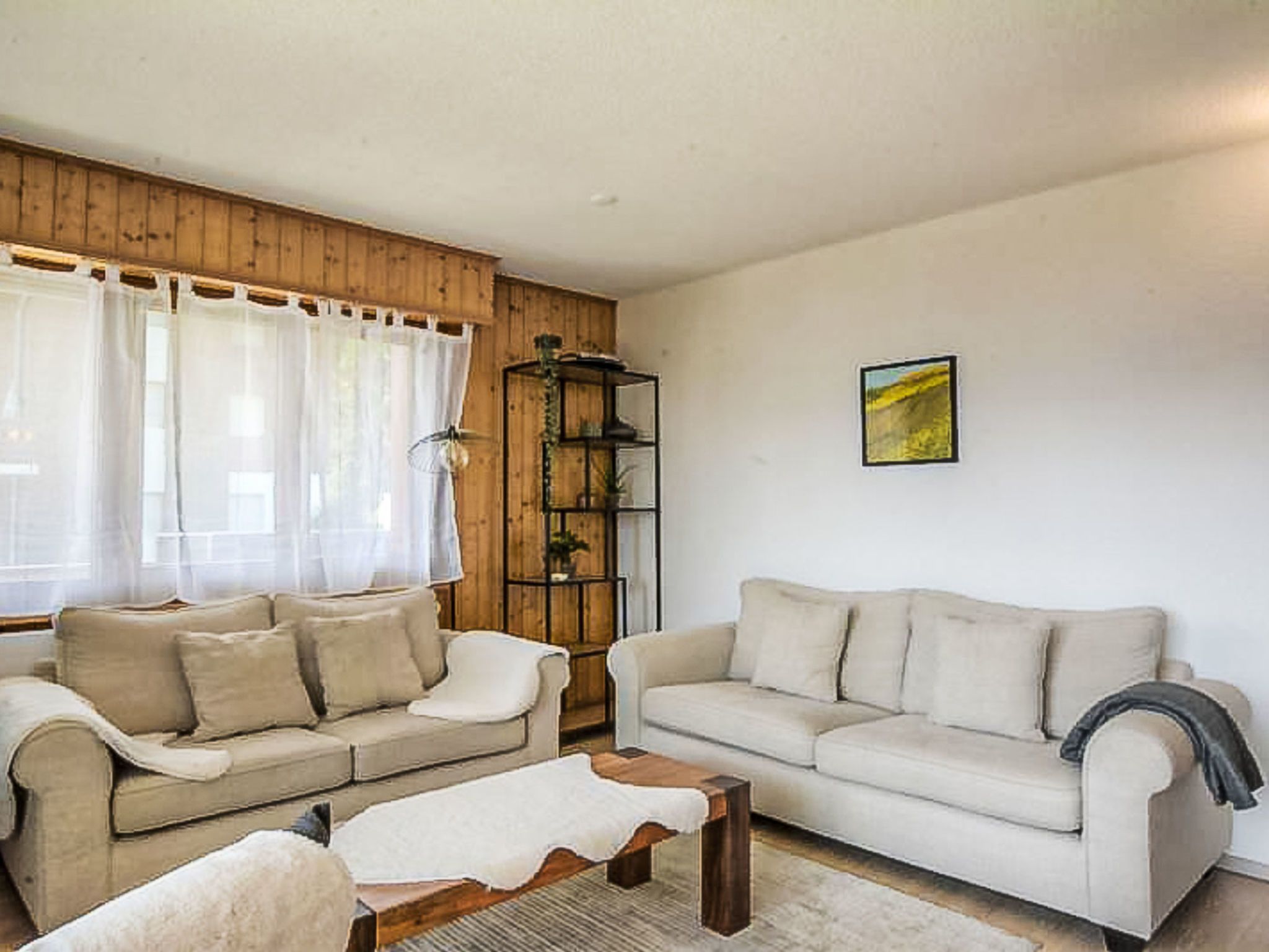 Edelweiss C604, 4-Zimmer-Wohnung 100 m2 im 1. Stock. Hell, renoviert im Jahre 2020, schön und gemütlich eingerichtet: Wohn-/Esszimmer mit offenem Kamin, Kabel-TV und DVD. Ausgang zum Balkon. 1 Zimmer mit 2 Betten. 1 Zimmer mit 2 Betten. Ausgang zum Balkon, Richtung Westen. 1 Zimmer mit 1 x 3 Etagenbetten. Offene Küche (Backofen, Geschirrspüler, 4 Glaskeramikplatten). Bad/WC, Dusche/WC. Balkon, Südostlage. Balkonmöbel. Schöne Sicht auf die Berge. Zur Verfügung: Babybett bis 2 Jahre. Internet (Wireless LAN, gratis). Bitte beachten: Nichtraucher-Unterkunft.