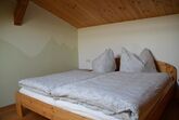 Insgesamt 2 Schlafzimmer: 1 Doppelzimmer mit TV Gerät sowie optional Stockbett für 2 kleine Kinder. 1 Doppelzimmer ist über eine schmale Treppe in der Dachgalerie erreichbar. Ein kleines Badezimmer mit Dusche/WC.