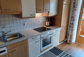Die Wohnküche ist mit Geschirrspüler, Elektroherd mit Backofen und Ceranfeld, Kaffeemaschine, Wasserkocher und einem Toaster ausgestattet.