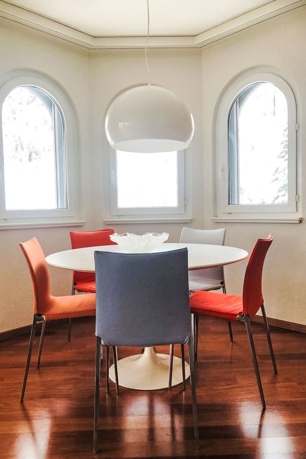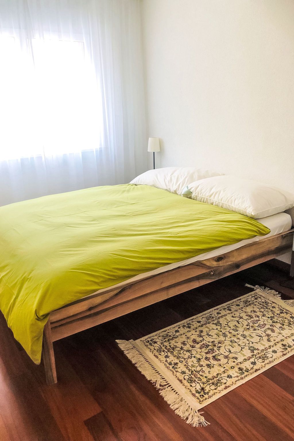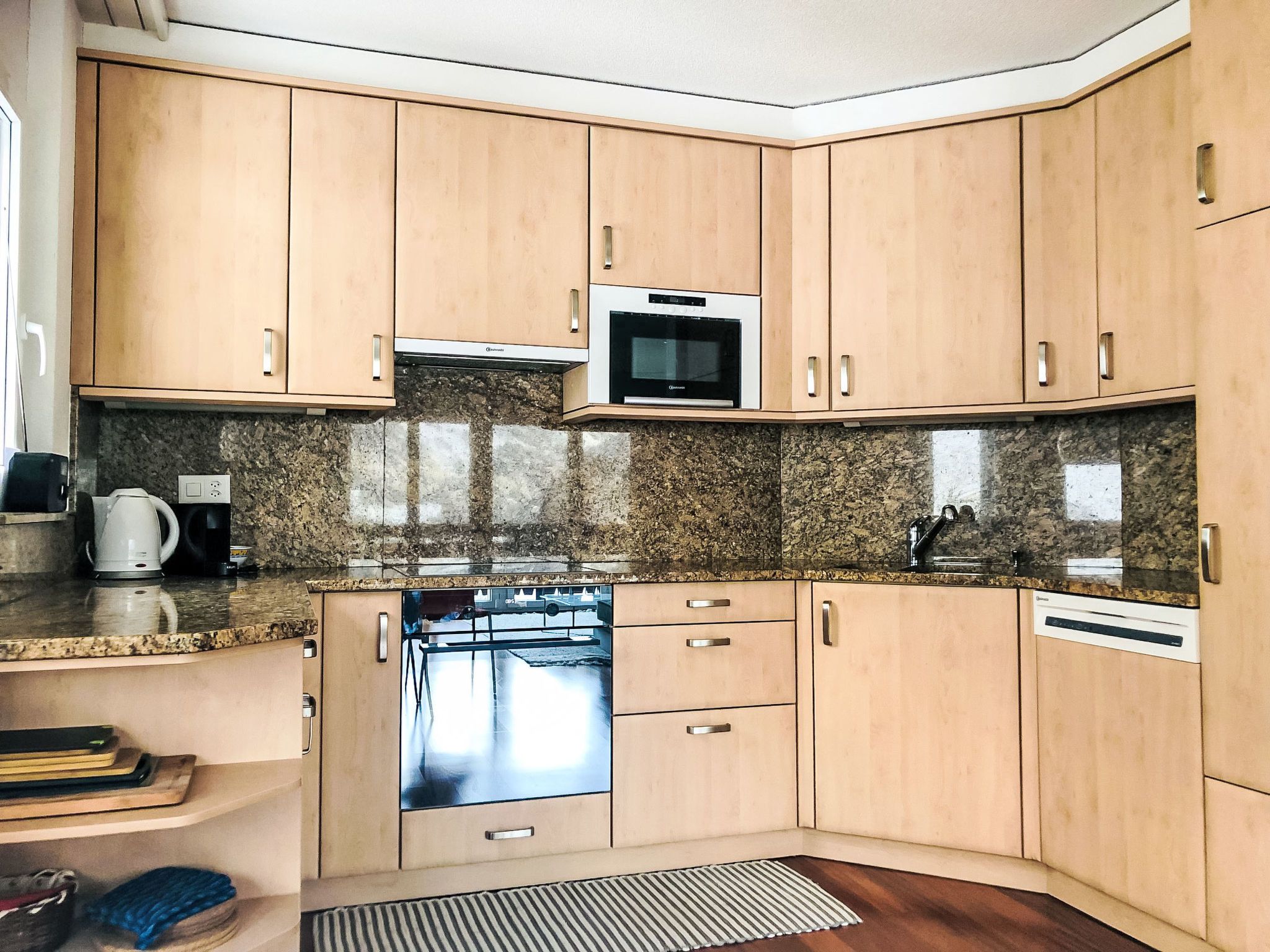 3-Zimmer-Wohnung 90 m2 im 3. Stock. Komfortabel und gemütlich eingerichtet: Wohn-/Esszimmer mit Kabel-TV (Flachbildschirm), Radio und DVD. Ausgang zum Balkon. 1 Doppelzimmer mit 1 Doppelbett. 1 Zimmer mit 1 Bett und 1 x 2 Etagenbetten. Offene Küche (Backofen, Geschirrspüler, 4 Glaskeramikplatten, Wasserkocher, Mikrowelle). 2 Duschen/WC, sep. WC. Balkon 6 m2, Südlage. Balkonmöbel. Schöne Sicht auf die Berge und die Landschaft. Bitte beachten: Nichtraucher-Unterkunft.