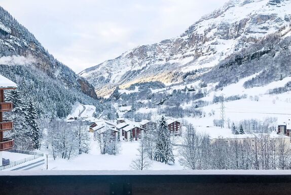 Schönes, komfortables Appartementhaus Edelweiss B, 1'350 m.ü.M.. Am Ortsrand, 450 m vom Zentrum, ruhige, sonnige Lage, 250 m vom Skigebiet. Zur Mitbenutzung: Kinderspielplatz. Im Hause: Fahrstuhl, Skiraum, Zentralheizung, Waschmaschine, Wäschetrockner (zur Mitbenutzung, extra). Brötchenservice. Zufahrt bis zum Haus (Bergstrasse). Gemeinschaftsgarage beim Haus. Einkaufsgeschäft, Lebensmittelgeschäft, Restaurant 250 m, Bushaltestelle Leukerbad, Bristol 200 m, Thermalbad 350 m. Tennis, Luftseilbahn, Skisportanlagen 250 m. In der Buchung ist die Leukerbad Plus Card inbegriffen. Die Leukerbad Plus Card beinhaltet folgende Leistungen: Freie Benutzung des Ortsbus Ringjet, Freie Benutzung des Kinder-Skigebietes Erli, Gratis Nutzung der Sportarena (Badminton, Tennis, Squash, Billard, Tischtennis, Eislaufen, Fussball, Indoor-Fussball, Minigolf, Boulder, etc.), 15% Ermässigung beim Kauf eines Schnee- und Badepasses. 10% Ermässigung auf Abonnemente und Mehrfacheintritte in öffentlichen Thermalbäder.