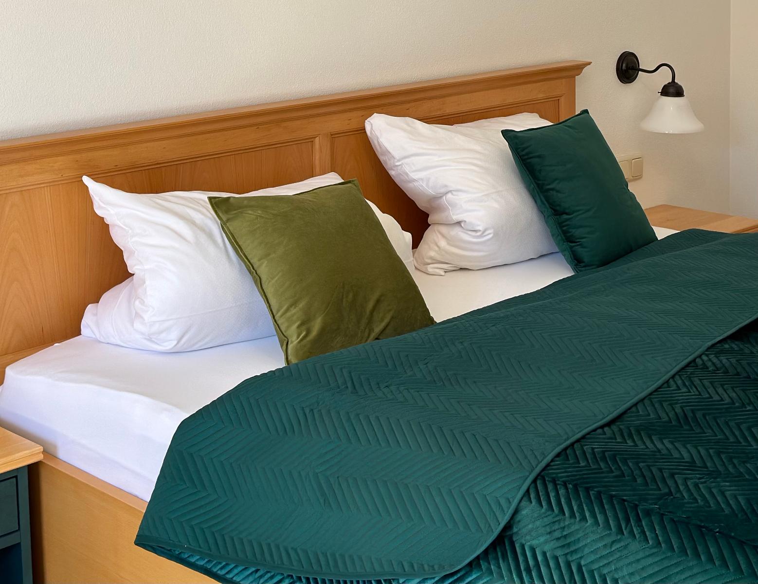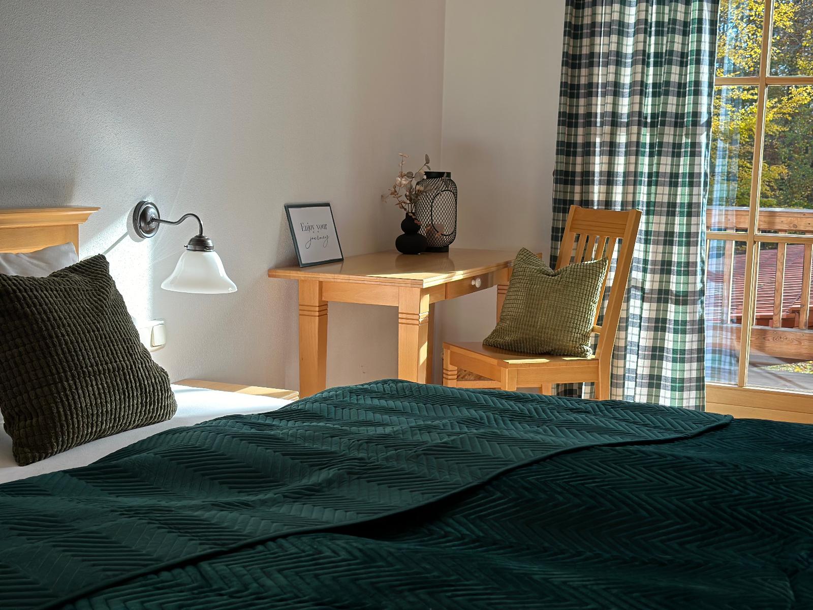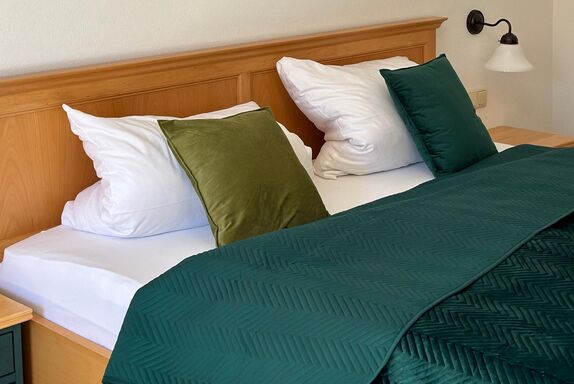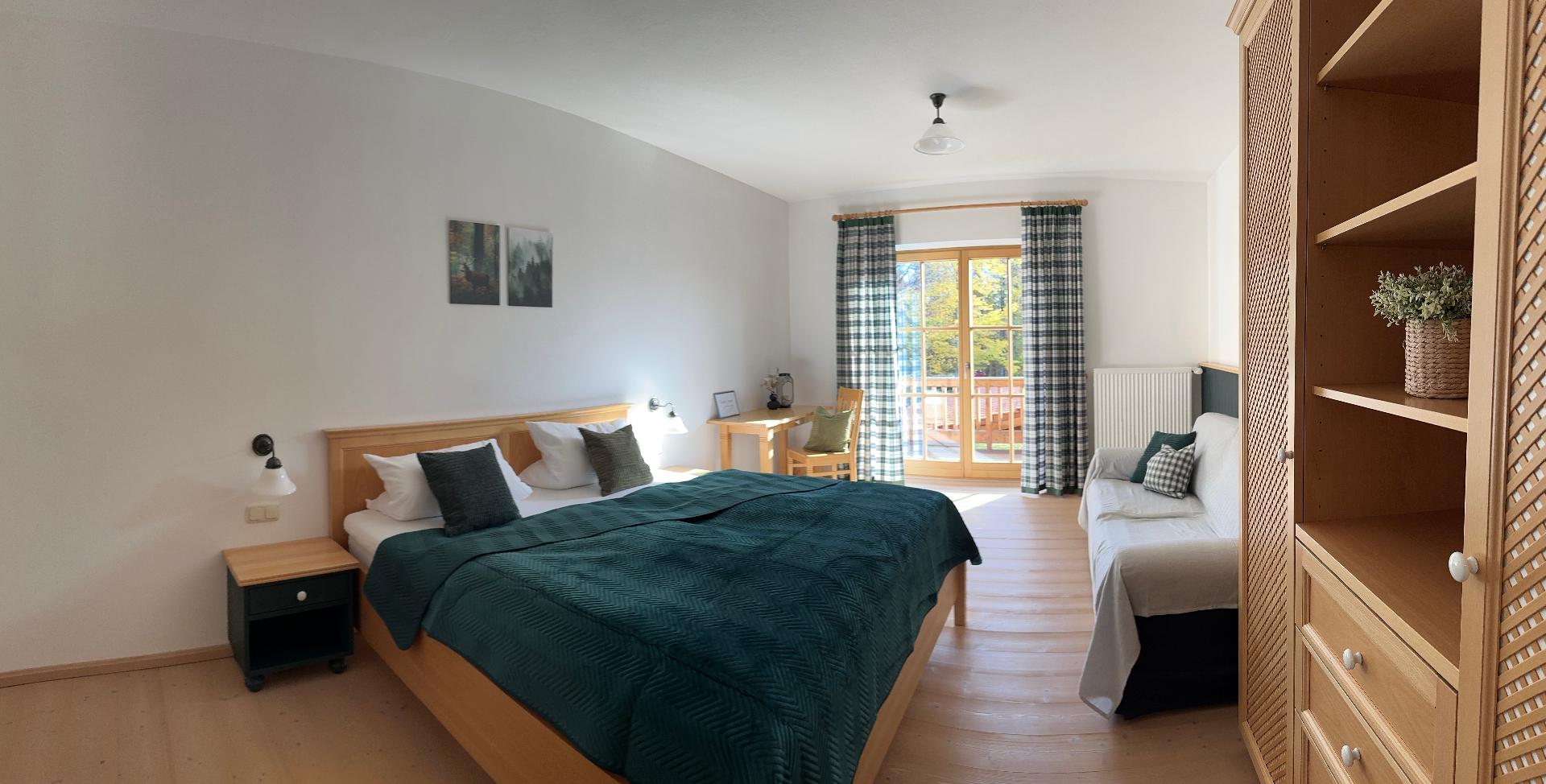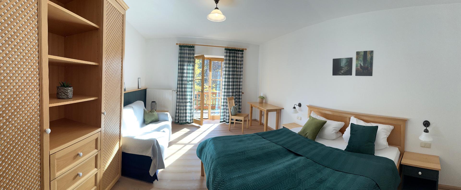Unsere Zimmer (ca. 30qm) sind ausgestattet mit einem Doppelbett, großzügigem Schrank, kleiner Schreibtisch und kleines Sofa. Sie verfügen über ein eigenes Bad mit Badewanne und extra WC.