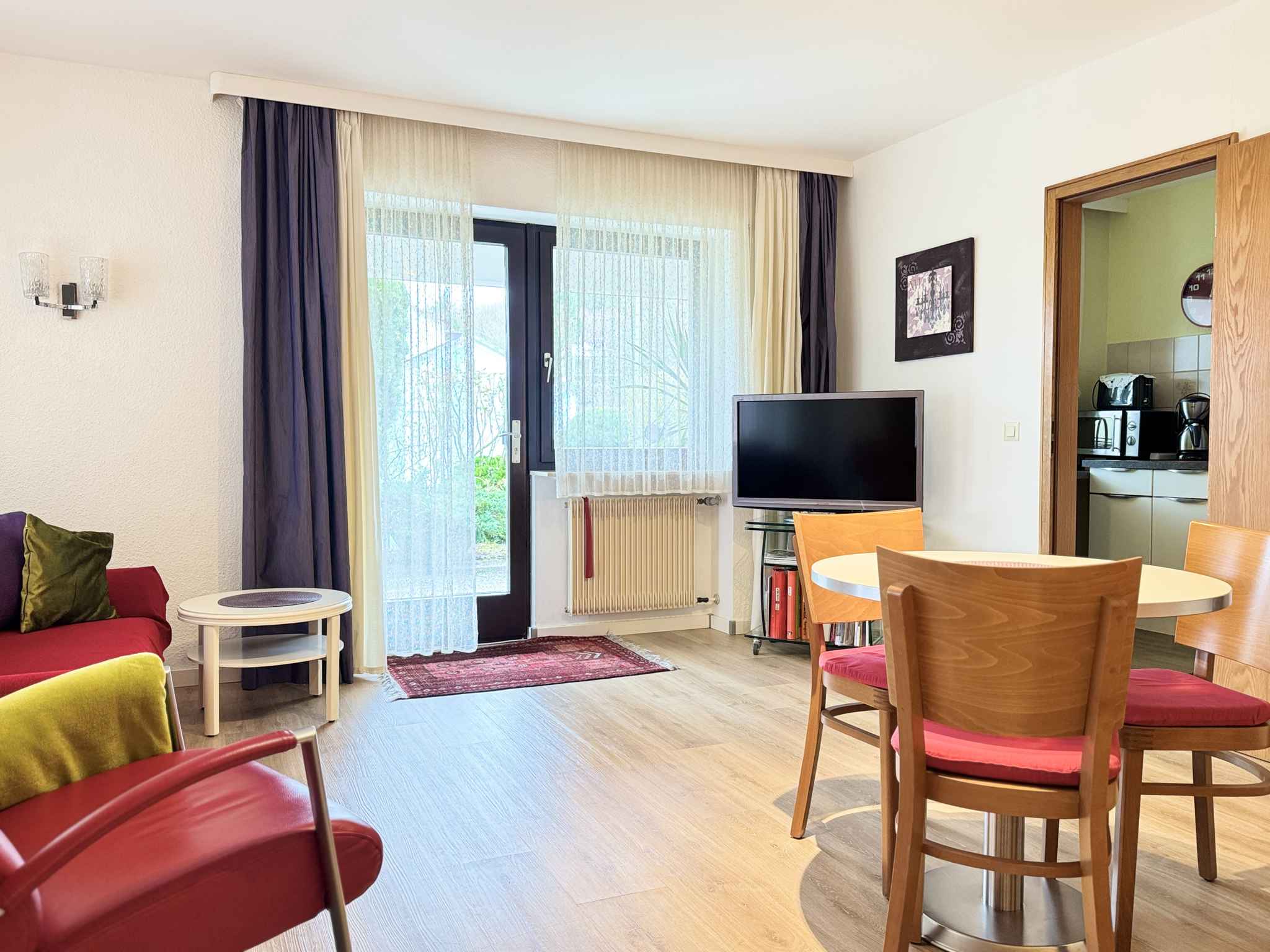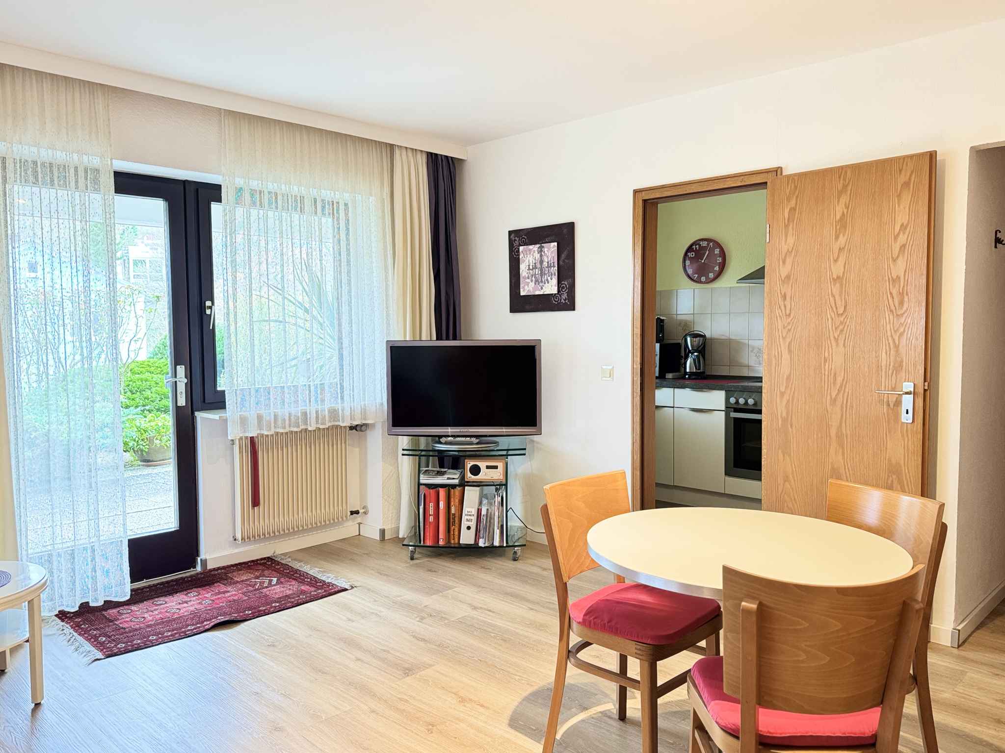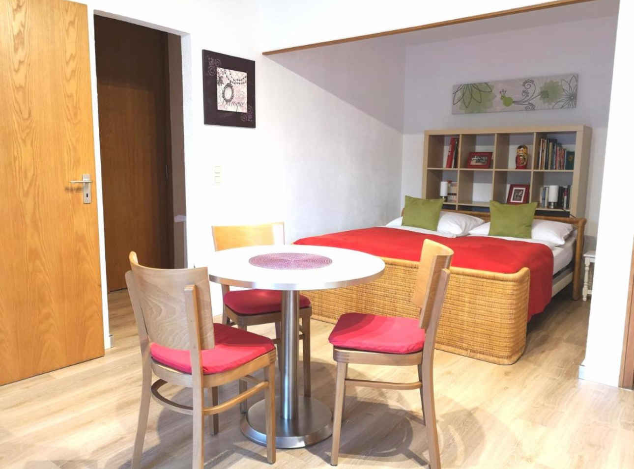 Ihr Studio erstreckt sich über 1 Etage, 1 Zimmer, ist 39 qm groß und ist für maximal 2 Personen geeignet. An kälteren Tagen kann Ihr Studio beheizt werden mit Zentralheizung (Gas). Das Rauchen ist in Innenräumen nicht gestattet. Der Eingang ist im Erdgeschoss und führt über eine Außentreppe und die Terrasse direkt in das Wohn/Schlafzimmer. Die Zimmer teilen sich wie folgt auf: Wohn/Schlafzimmer 25 qm groß und mit 1 Doppelbett und 1 Zusatzbett auf Couch/Sofa, Sitzecke, Essecke, TV und Radio. Die Essecke bietet Platz für 3 Personen. Sie haben Zugang zur überdachten Terrasse mit Gartenmöbeln, 1 Tisch und 2 Stühlen. Küche 6 qm groß und mit Essecke, Elektroherd (Cerankochfeld, 4 Platten), Backofen, Dunstabzugshaube, Kühlschrank (Eisfach), Mikrowelle, Kaffeemaschine, Toaster und elektrischem Wasserkocher. Die Essecke bietet Platz für 2 Personen. Bad 5 qm groß und mit Dusche, 1 Waschbecken, WC und Föhn. Darüber hinaus ist Ihr Studio mit WLAN- Internetzugang und Bügeleisen ausgestattet. TV- bzw. Rundfunksender können per Kabel empfangen werden. Flatscreen-TV und große Auswahl an Filmen.