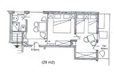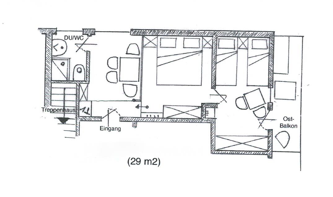 Familienzimmer mit 30m² für 2 Personen, oder 2 Erwachsene plus 1 - 2 Kinder, bestehend aus 2 Schlafzimmern mit Verbindungstür, BALKON, Dusche/WC, Sat-TV, Mini-Kühlschrank, Microwelle, Wasserkocher, Wireless Lan. sämtliche Wäsche komplett! Keine tägliche Zimmerreinigung.