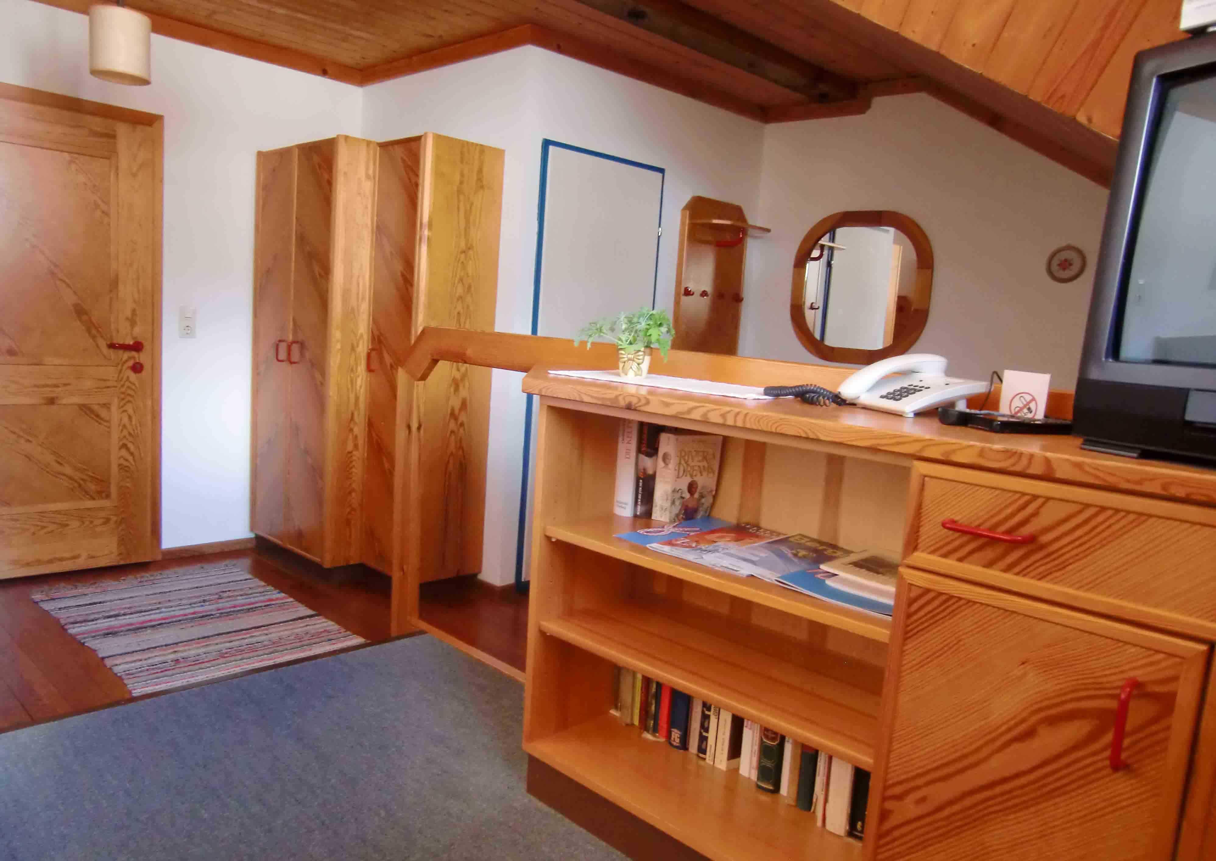 Komfort-Doppelzimmer mit 30m² für 2 Personen, mit gemütlicher Wohnecke, Dusche und WC. Sat-TV/Radio, Wireless Lan, abgetrennt vom Raum: Kühlschrank, kleine Kochgelegenheit, Kaffeemaschine, Geschirr. sämtliche Wäsche komplett! Keine tägliche Zimmerreinigung.