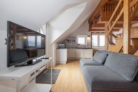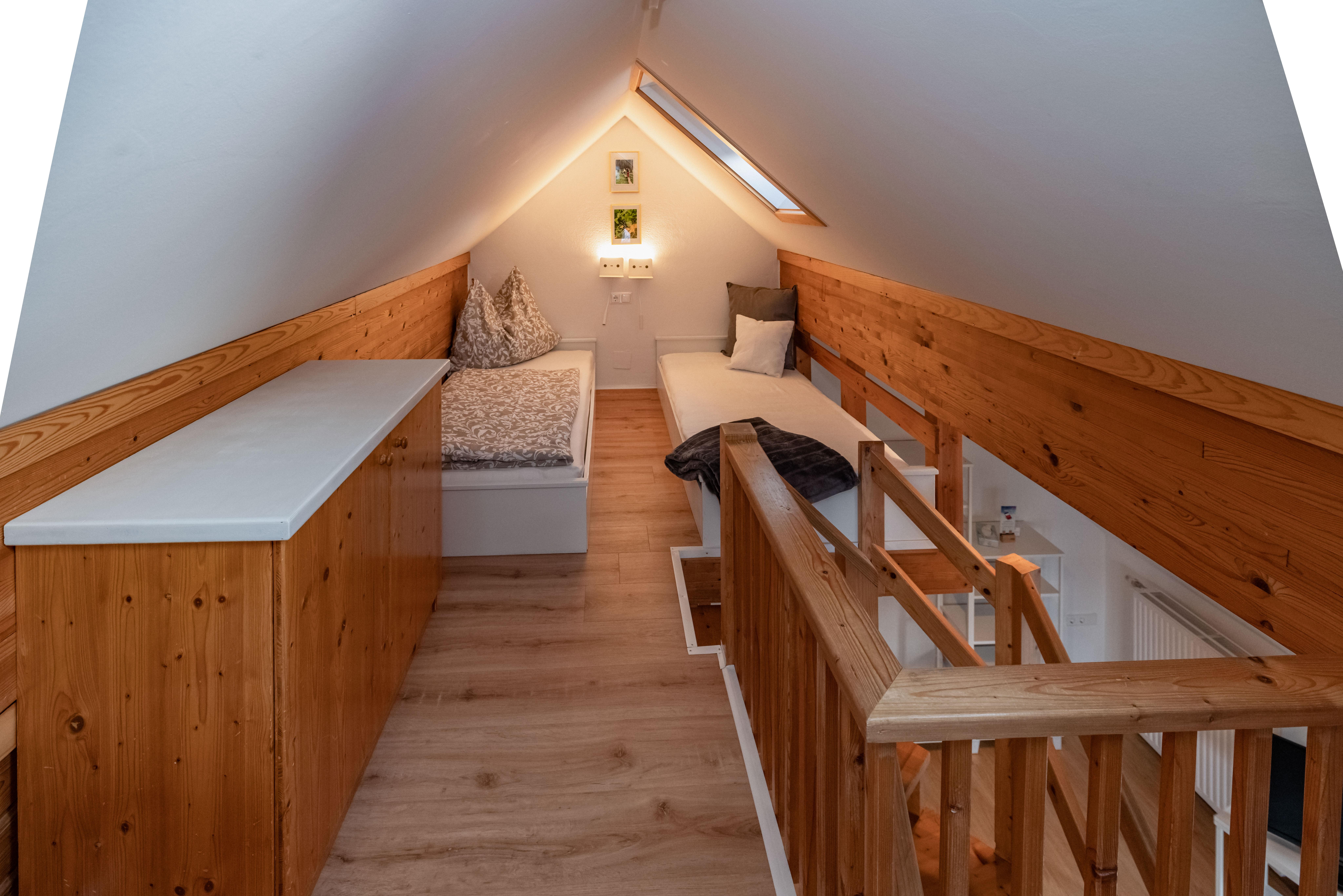 Für 1-4 Personen (Kinder ab 5 Jahren!) - 40 m² + Schlafgalerie. Gemütliche Wohnung mit viel Holz, Gitterbett ist nicht möglich.