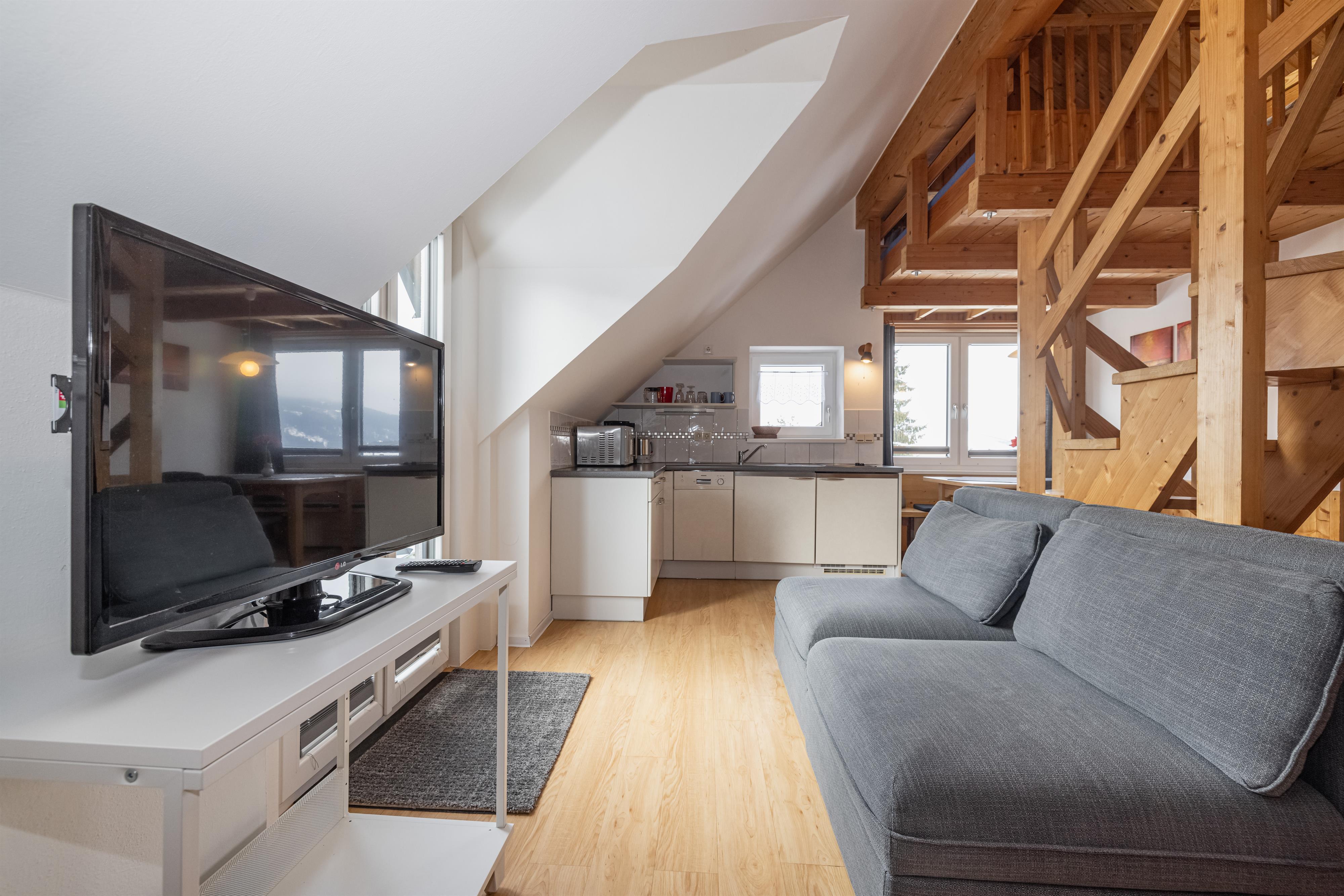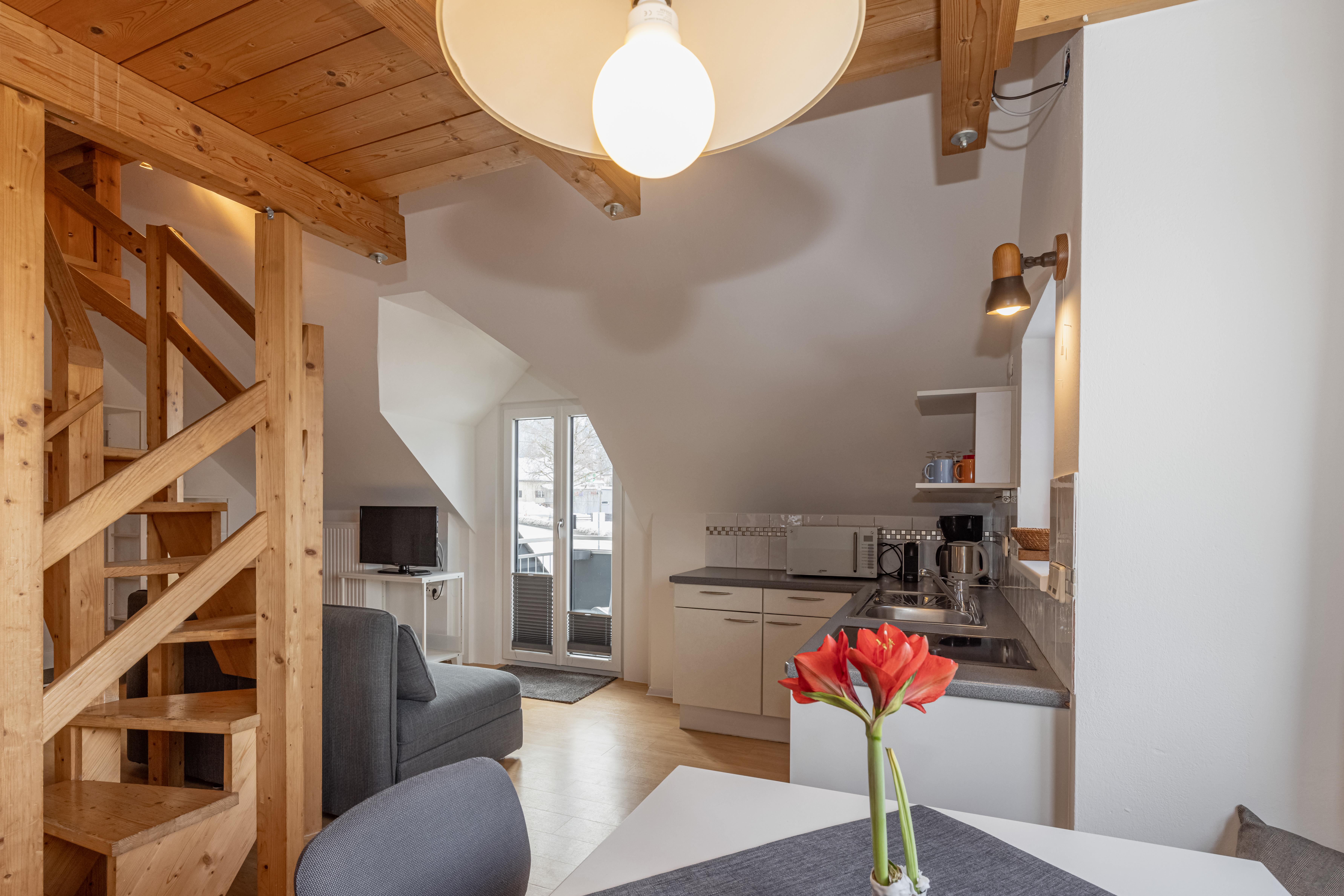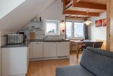 Ausstattung: • 1 Doppelbettzimmer • Schlafgalerie mit 2 Einzelbetten und Couch • große gemütliche Wohnküche mit Couch • Balkon (neu!) Geschirrspüler • Mikrowelle, Nespresso Maschine, Wasserkocher, Kühlschrank mit TK Fach, WiFi Anschluss • SAT-TV • WC • Dusche