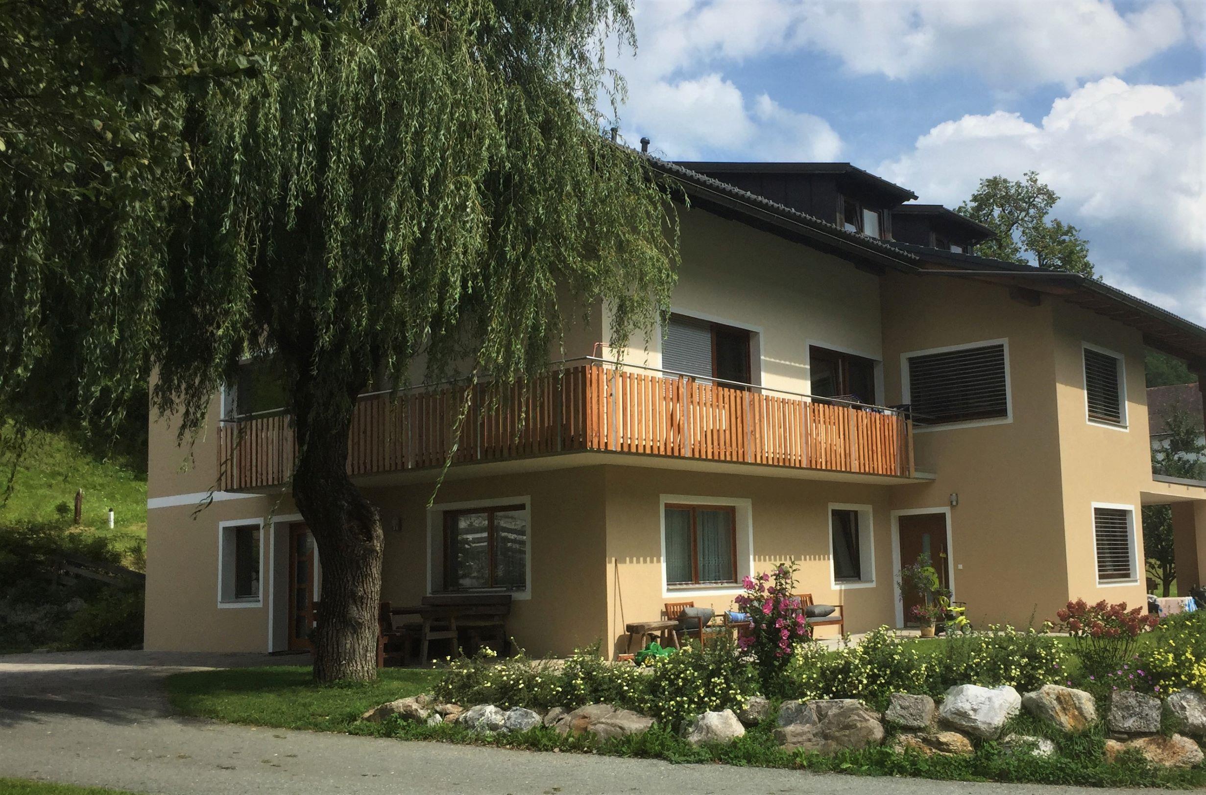 Bauernhof, 600 m Seehöhe, ruhig gelegen, familienfreundlich geführt, großer Kinderspielplatz m. Schaukel, Rutsche. Rad- und Spazierwege in der Nähe, geräumige Apartments für 2–5 Personen, Brötchenservice, Hausprodukte wie Bauernbrot, Marmelade, Hühnereier....,