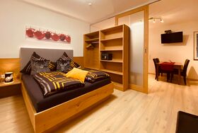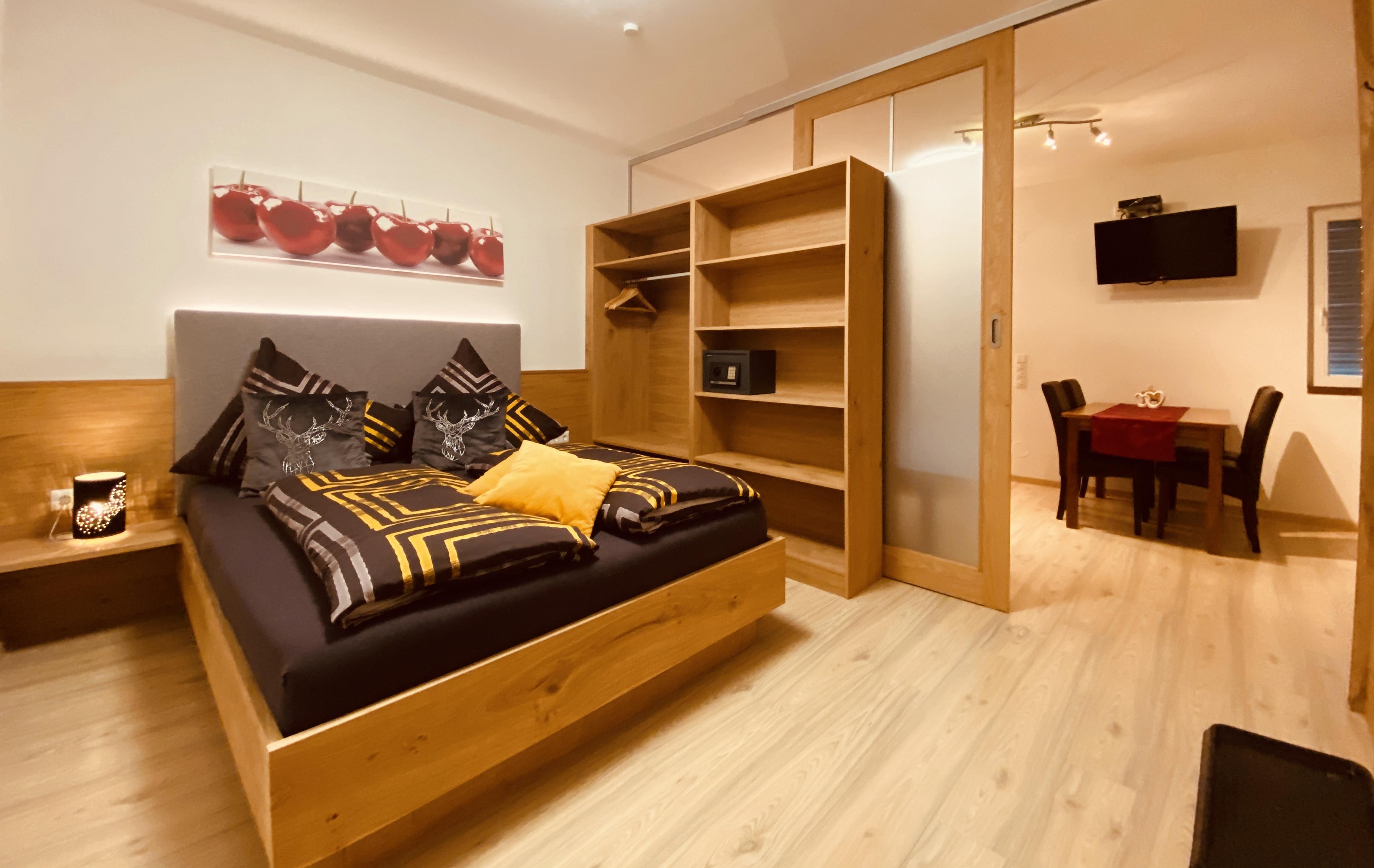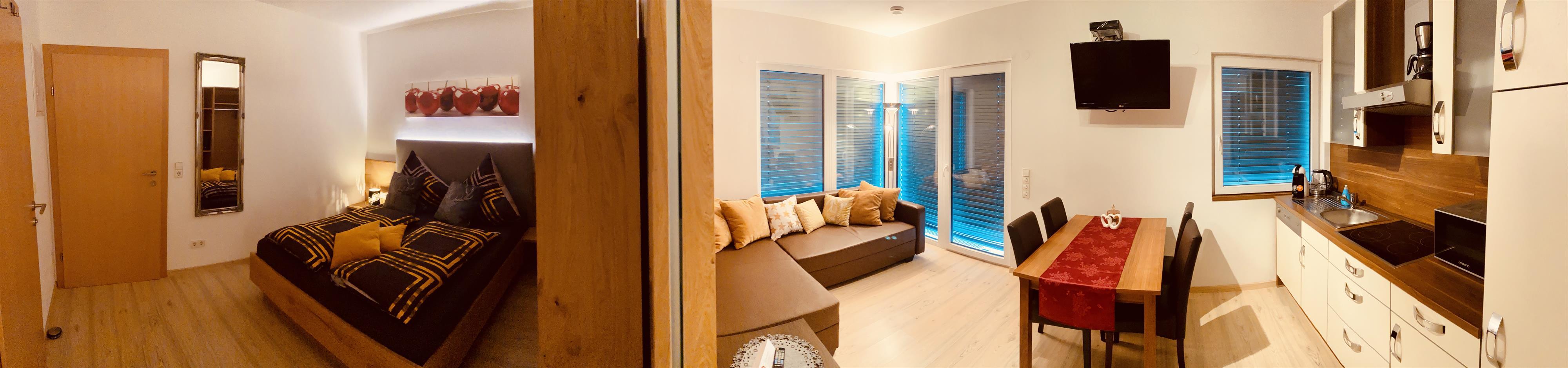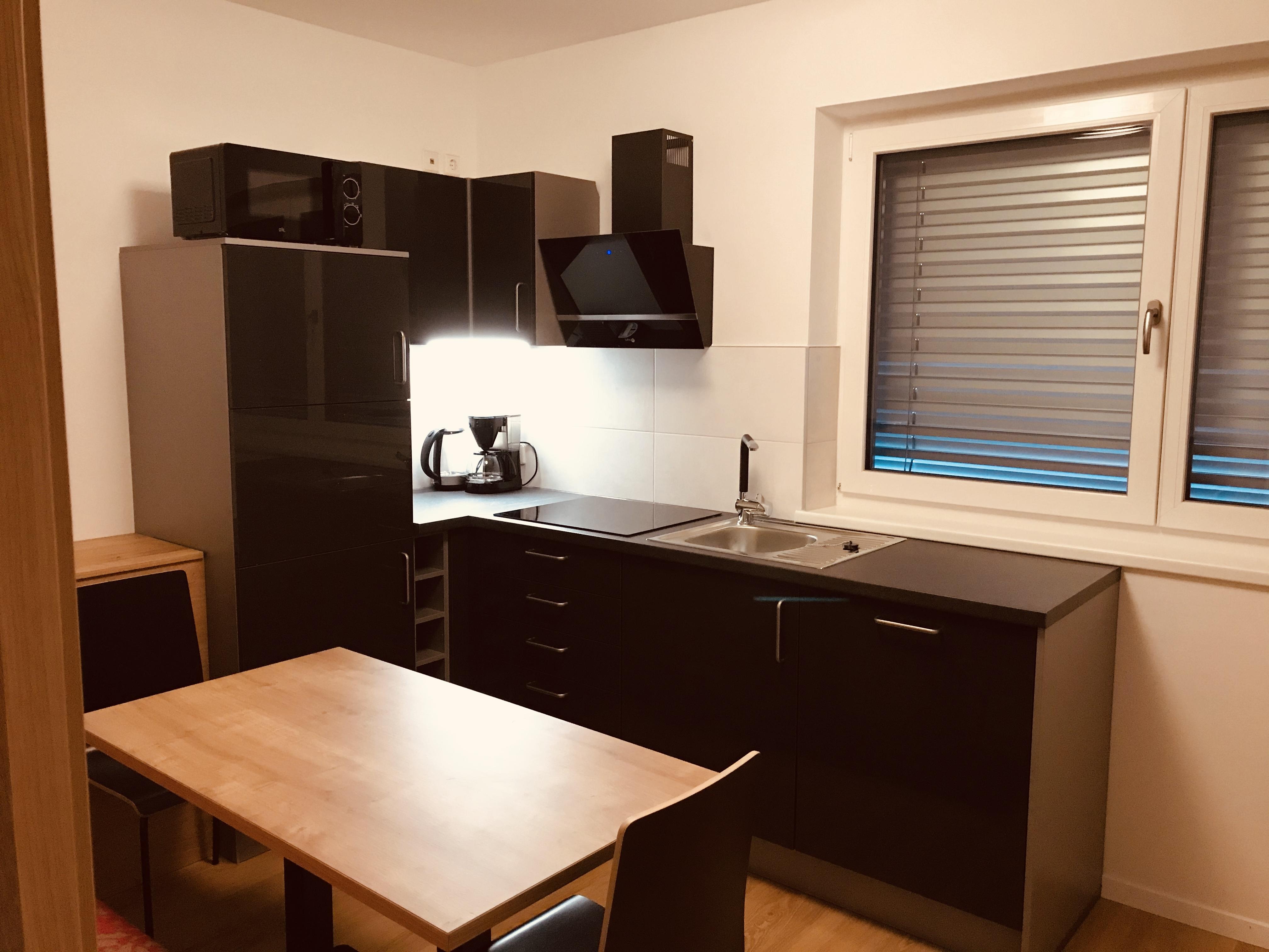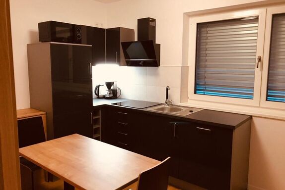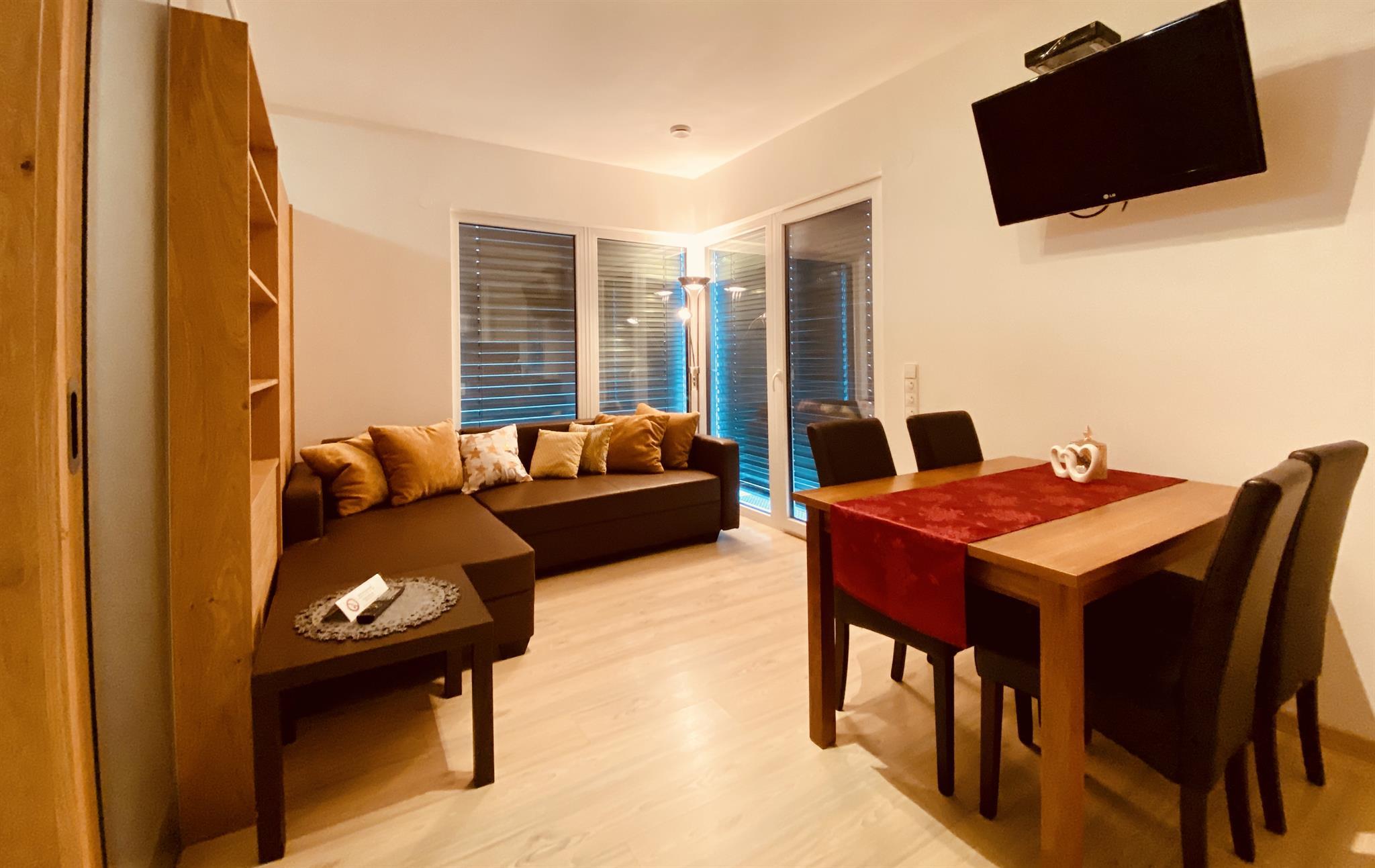 Neu errichtetes Apartment für 2-3 Personen mit 1 getrennten Schlafzimmer und gemütlicher Wohn-Küche mit Schlafsofa, Smart-TV; im 1. Stock mit Terrasse. Moderne Ausstattung, Nespresso-Kapselmaschine, 4 Cerankochfelder, kostenlos WLan; nur wenige Minuten zu Fuß zur Talstation Millennium-Express.