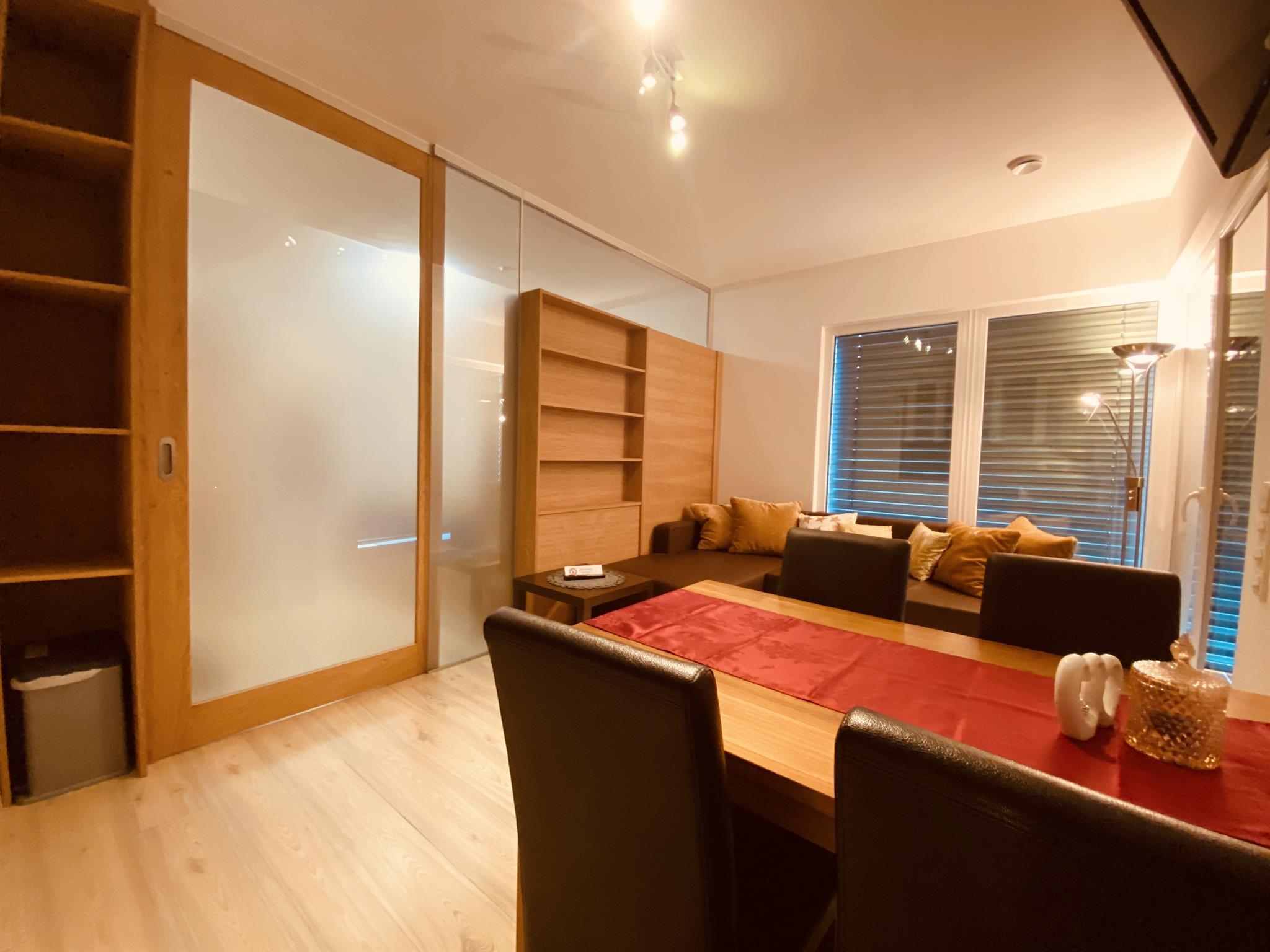 Kleines feines Apartment für 2-3 Personen (auch 2 Erw + 2 kleine Kinder möglich), ein getrenntes Schlafzimmer mit Doppelbett,Safe; gemütlicher Wohnraum mit Schlafsofa, komplett ausgestattete Küche (Cerankochfeld 4 Platten, Kühl-/Gefrierschrank, Geschirrspüler, Kaffeemaschine, Microwelle...), Sat-TV, Du/WC, Terrasse - Gartenzugang ebenerdig; WLAN kostenlos.