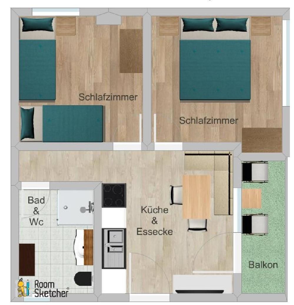 Ferienwohnung für max. 4 Personen • ca. 40 m² für max. 4 Personen • 1 Schlafzimmer mit Doppelbetten • 1 Schlafzimmer mit Doppelbett und ein Einzelbett • 1 Sitzecke • Dusche/ WC • Kostenloses Wlan • Bade- und Handtücher • Bettwäsche • Balkon • Fön • TV • Mikrowelle • Kühlschrank • Gefrierfach • Geschirr • Brotschneidemaschine