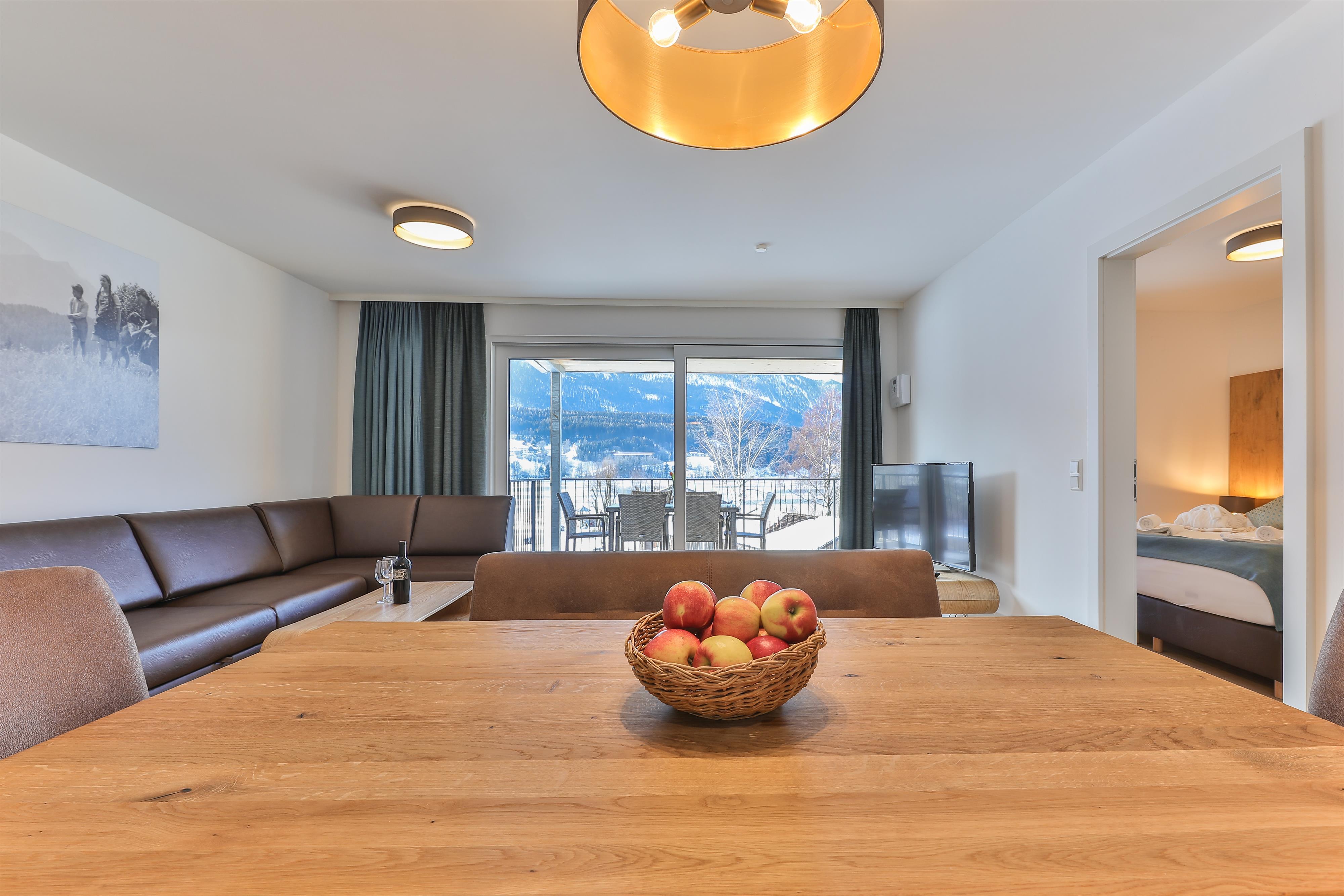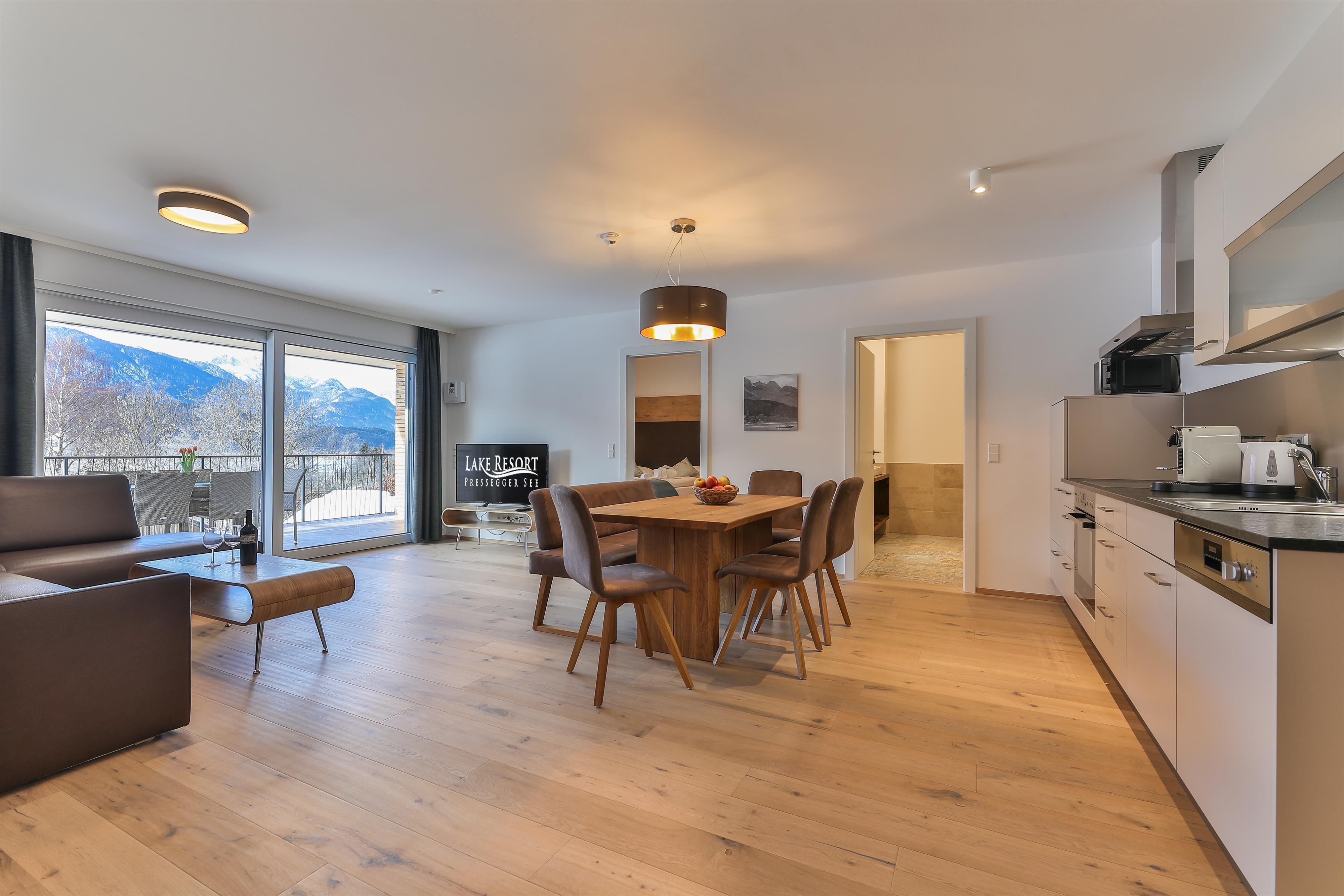 Die modernen Premium Apartments im neu errichteten Hauptgebäude erfüllen alle Wünsche. Von der Tiefgarage bis zur privaten Panoramasauna inklusive herrlichem Ausblick über das gesamte Resort und den Pressegger See.