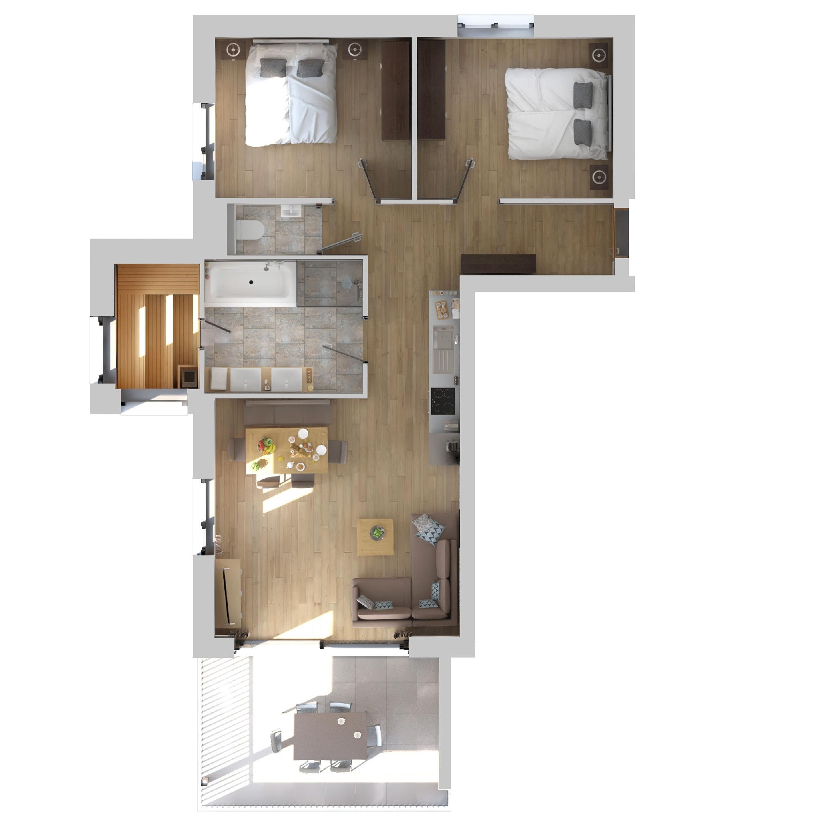 • Luxusausstattung mit 2 getrennten Schlafzimmern