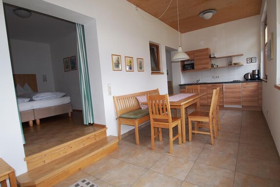 Erleben Sie echten Urlaub am Bauernhof in unserer gemütlichen Ferienwohnung Traumblick 2 – ideal für Familien, Paare und Naturliebhaber, die Erholung in den Bergen suchen. Zwei seperate Schlafzimmer bieten Platz für Groß und Klein: Im Elternzimmer sorgen komfortable Boxspringbetten für erholsame Nächte, während das Kinderzimmer mit zwei Betten und einer Bettcouch zum Spielen, Kuschreln und Träumen einlädt.