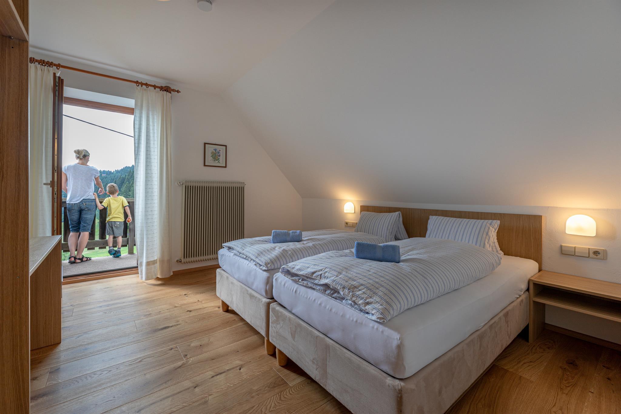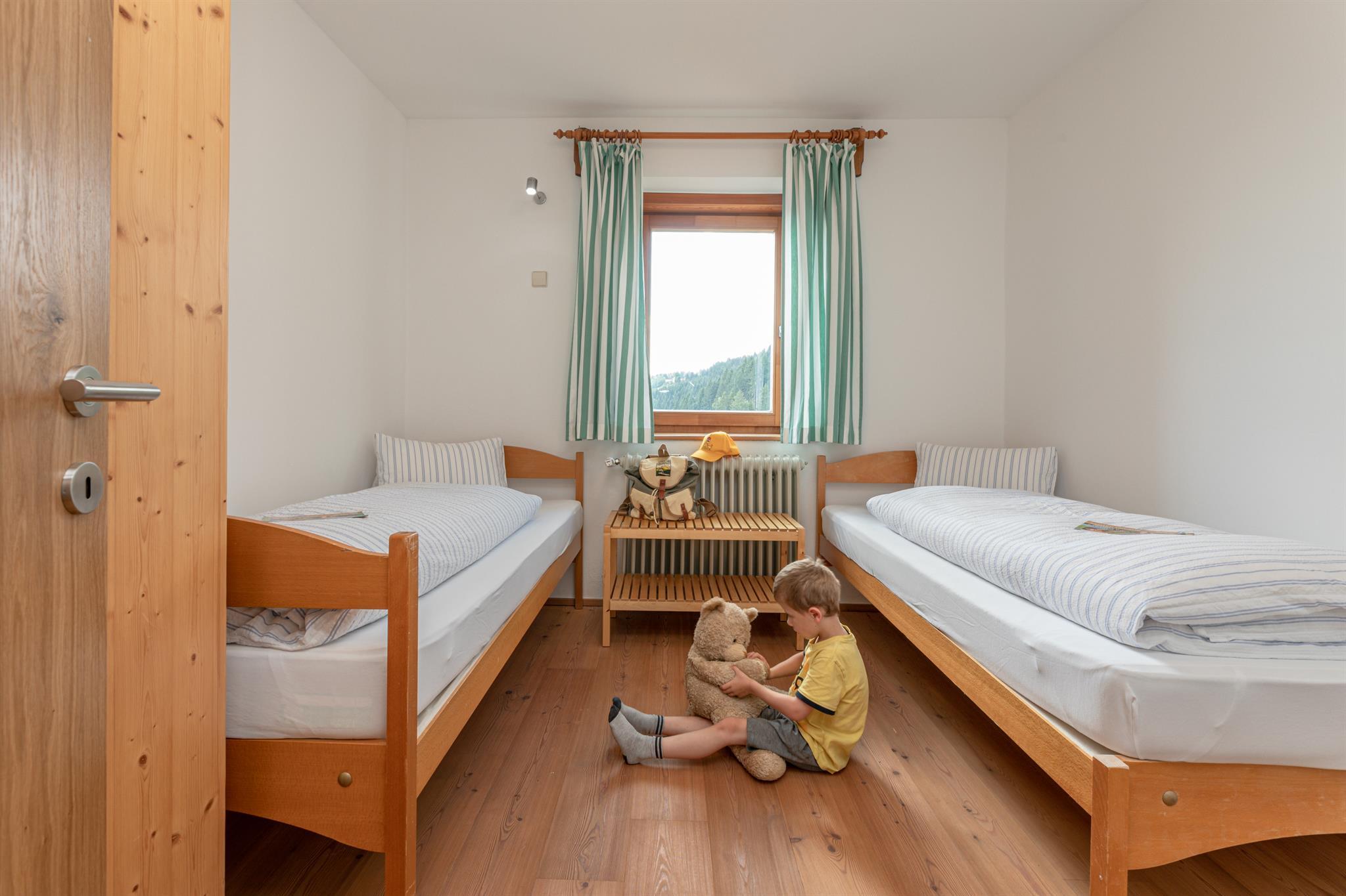 Die Ferienwohnung ist perfekt geeignet für Familienurlaub im Gailtal, Wanderurlaub in Kärnten und Erholung in den Bergen. Zwei seperate Schlafzimmer bieten angenehmen Komfort: Elternschlafzimmer mit Boxspringbett und Balkon mit Sonnenuntergangsblick, das Kinderzimmer hat zwei Einzelbetten, Bettwäsche und Handtücher sind vorhanden – frisch getrocknet an der klaren Bergluft.
