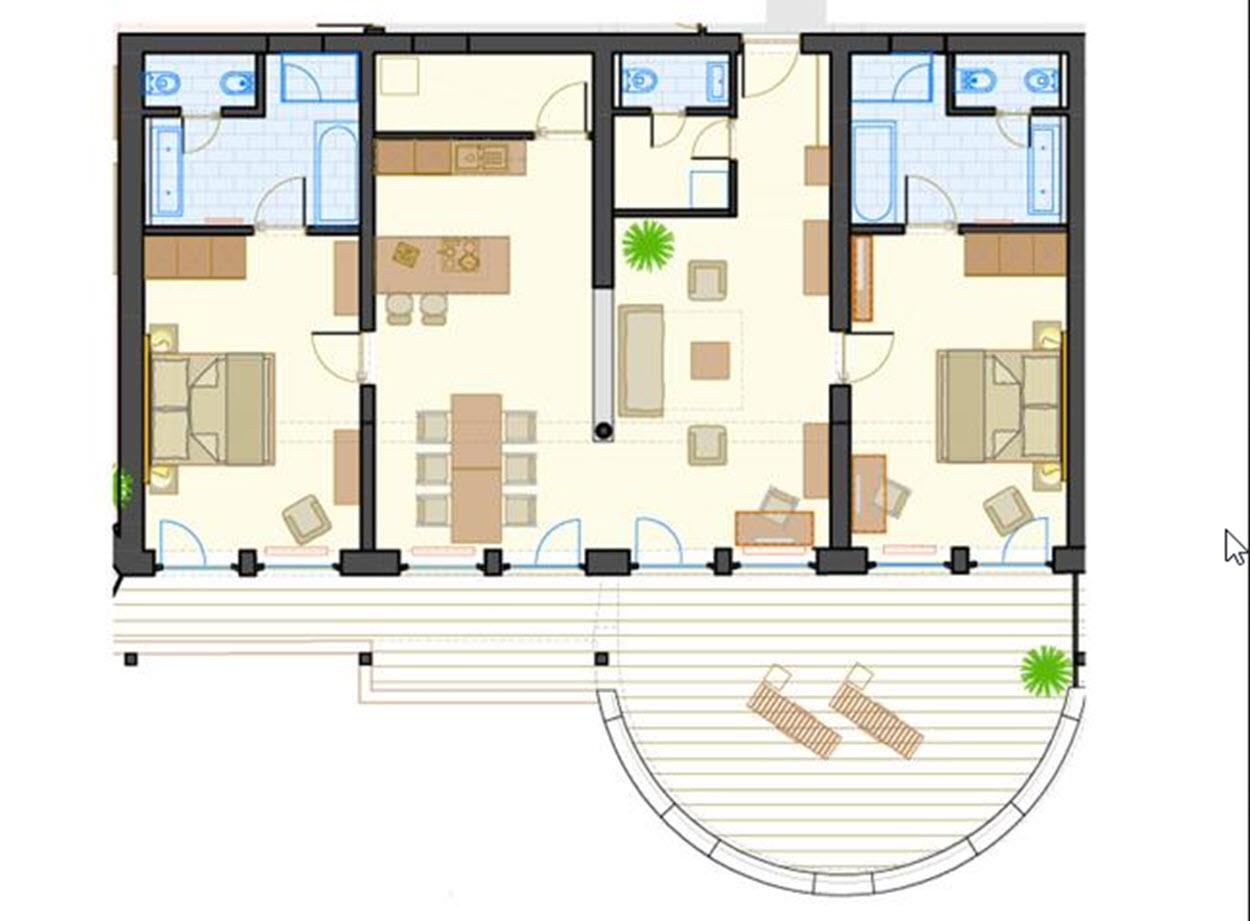*ca.115m² *1-6 Personen *2 Schlafzimmer *1 Wohnzimmer mit Schlafsofa offen zur vollausgestatteten Küche mit großem Essbereich *2 Badezimmer mit Doppelwaschtisch, Dusche, Badewanne und separatem WC/Bidet *1 WC extra *große Südterrasse, ca.45m²