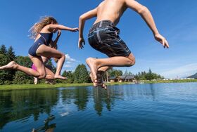 + Tretboot, Baden und Schwimmen in unserem kleinen, am Hof gelegenen Badesee
