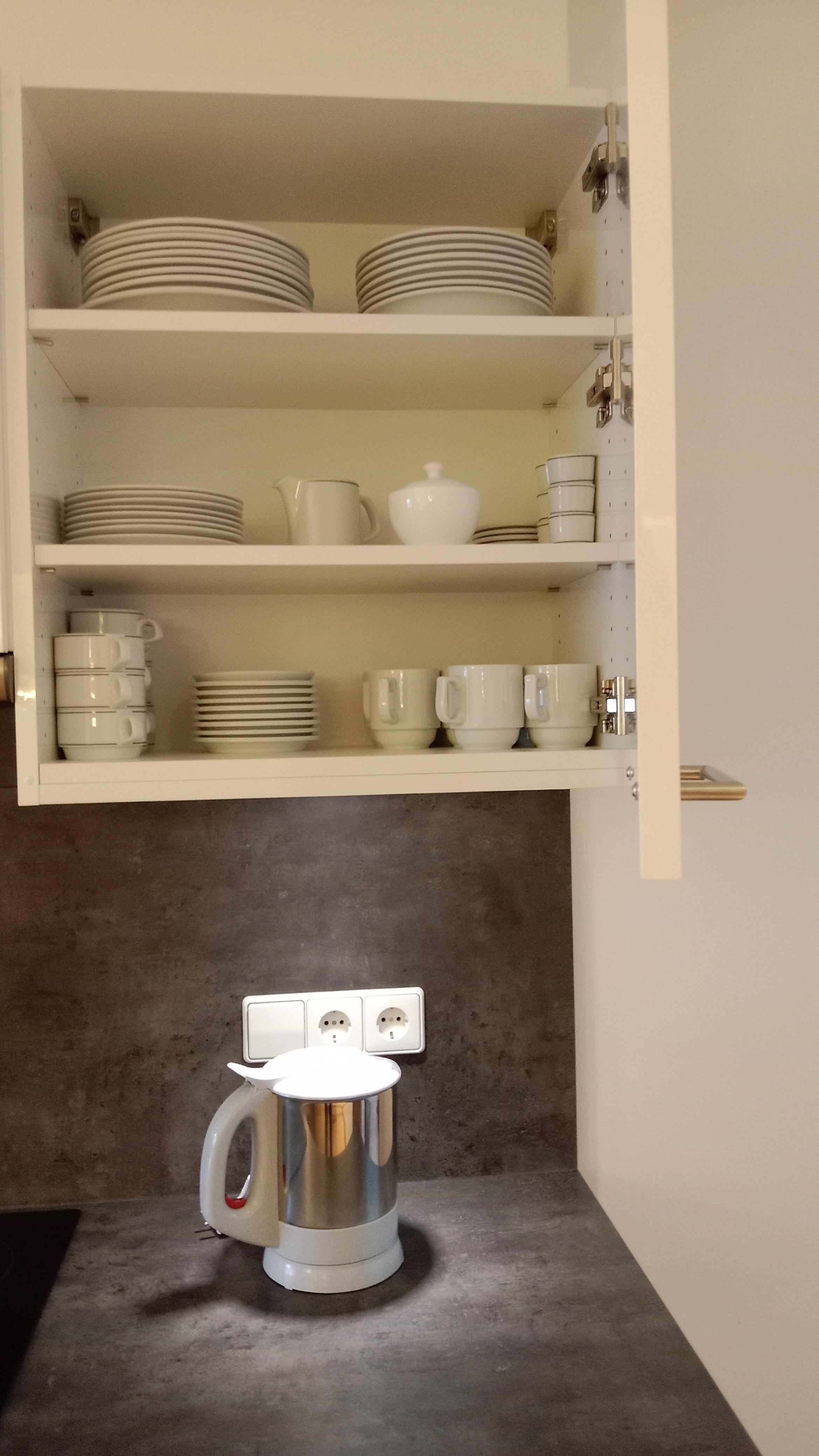 Küchenausstattung: Kochfeld, Backrohr Geschirrspüler, reichlich Geschirr, Wasserkocher, Kaffeemaschine (Nespresso oder Filter), Kühlschrank mit Gefrierfach;