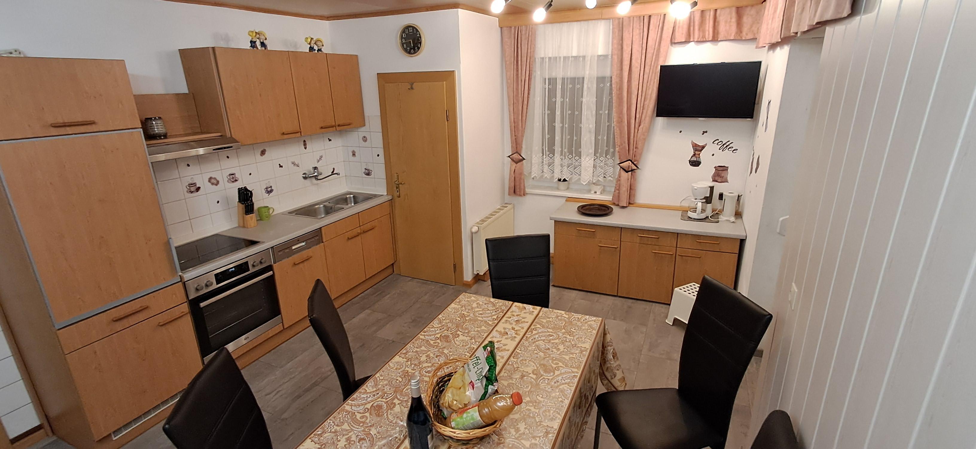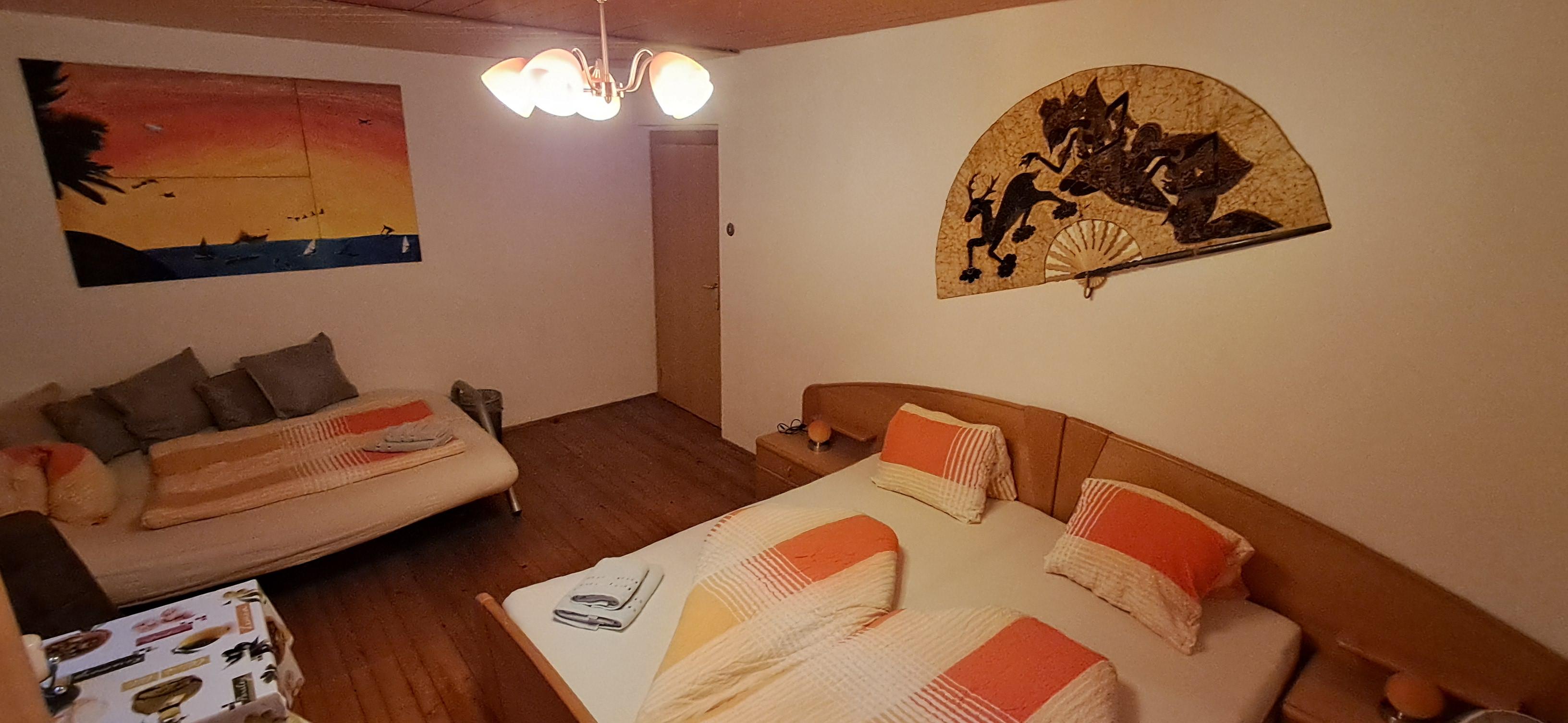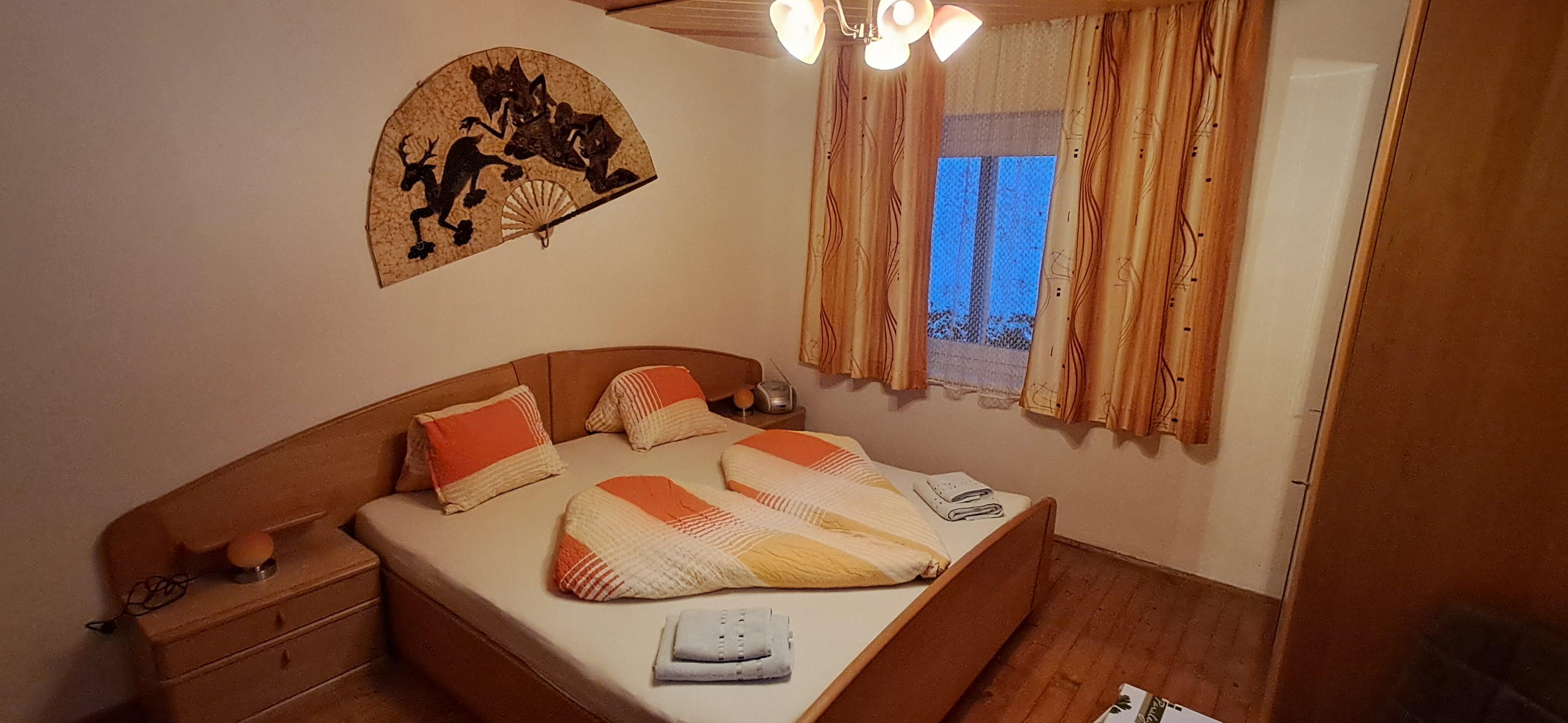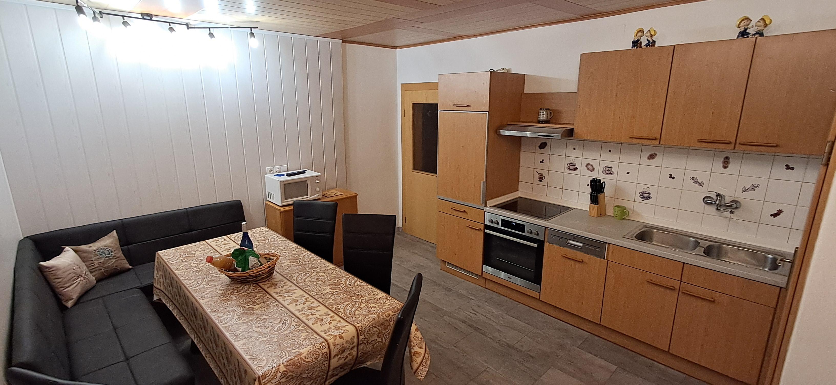 In zwei Zimmern befinden sich jeweils ein Doppelbett sowie ein Einzelbett. In beiden Zimmern sind ebenso Fernseher mit Satellitenanschluss zu finden. Im dritten Zimmer steht ein weiteres Doppelbett. In unserer Ferienwohnung gibt es auch einen schönen Vorraum mit Garderobe. Das Badezimmer verfügt über eine Dusche, ein WC und einen schönen Waschbereich. In der Küche findet man genügend Platz für bis zu 8 Personen. Mit einem großen Esstisch und einem Fernseher mit Satellitenanschluss steht auch gemütlichen Fernsehabenden nichts im Wege. Direkt von der Küche aus kommt man auf die Terasse wo sich auch der direkte Anschluss an den Garten mit Kamingrill befindet. Dort kann man gemütliche Grillabende genießen.