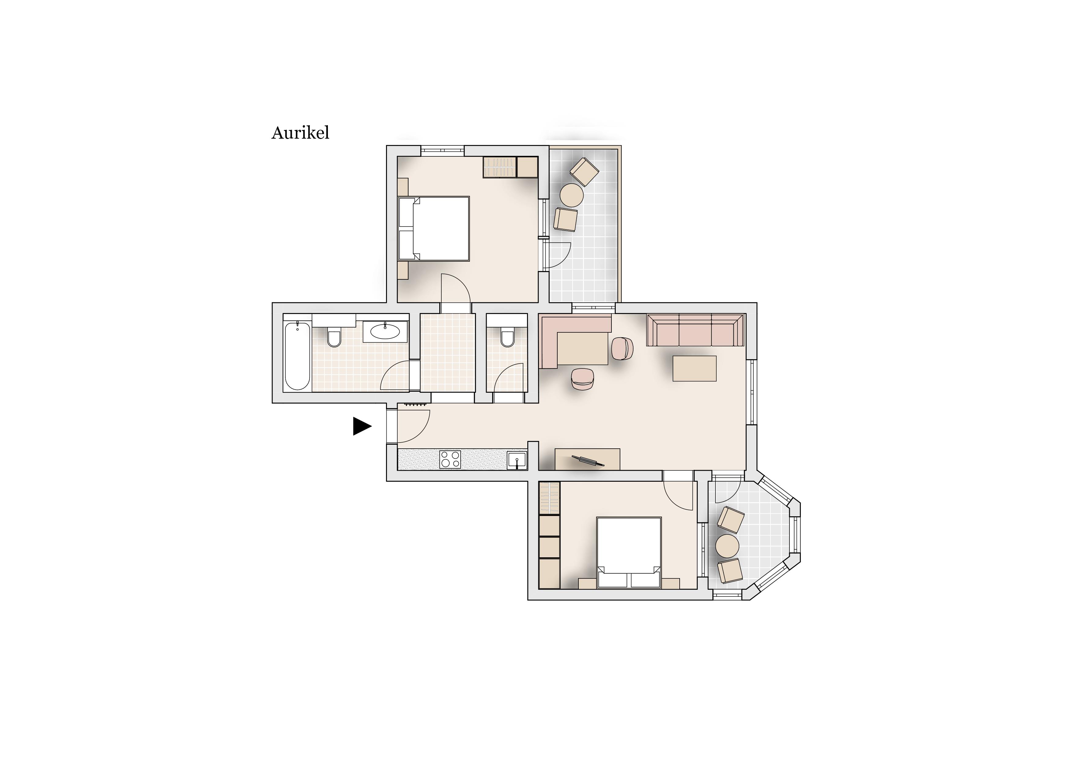 Die gemütlichen und komplett ausgestatteten Appartements im Tiroler Landhaus Charlotte bieten für Paare, Freunde und Familien mit Kindern alles, was es für einen erholsamen Urlaub braucht. Jede der insgesamt 11 Ferienwohnungen für 1 bis 7 Personen hat ihren eigenen Charme und besticht mit anderen, individuellen Details. Das großzügige Appartement „Akelei“ mit Dachterrasse, Essecke mit Panoramafenster, rustikalen Dachbalken und Turm-Erker gilt mit 40 m² als Bestseller für 2 bis 3 Personen. Die romantisch-kuschelige, 25 m² große 1-Raum-Wohnung „Edelweiß“ ist mit geneigten Dachbalken und Balkon für verträumte Blicke auf das Karwendelgebirge das perfekte Nest für Verliebte. Die geschmackvoll eingerichtete 3-Raum-Wohnung „Aurikel“ kann mit 70 m², 2 getrennten Schlafzimmern, großem Wohnzimmer mit Ess- und Sitzecke, Balkendecke, Loggia und Balkon sowie Rundum-Bergblick als Geheimtipp für Familien weitergegeben werden. Auch Ihr treuer Begleiter auf vier Pfoten ist herzlich willkommen.