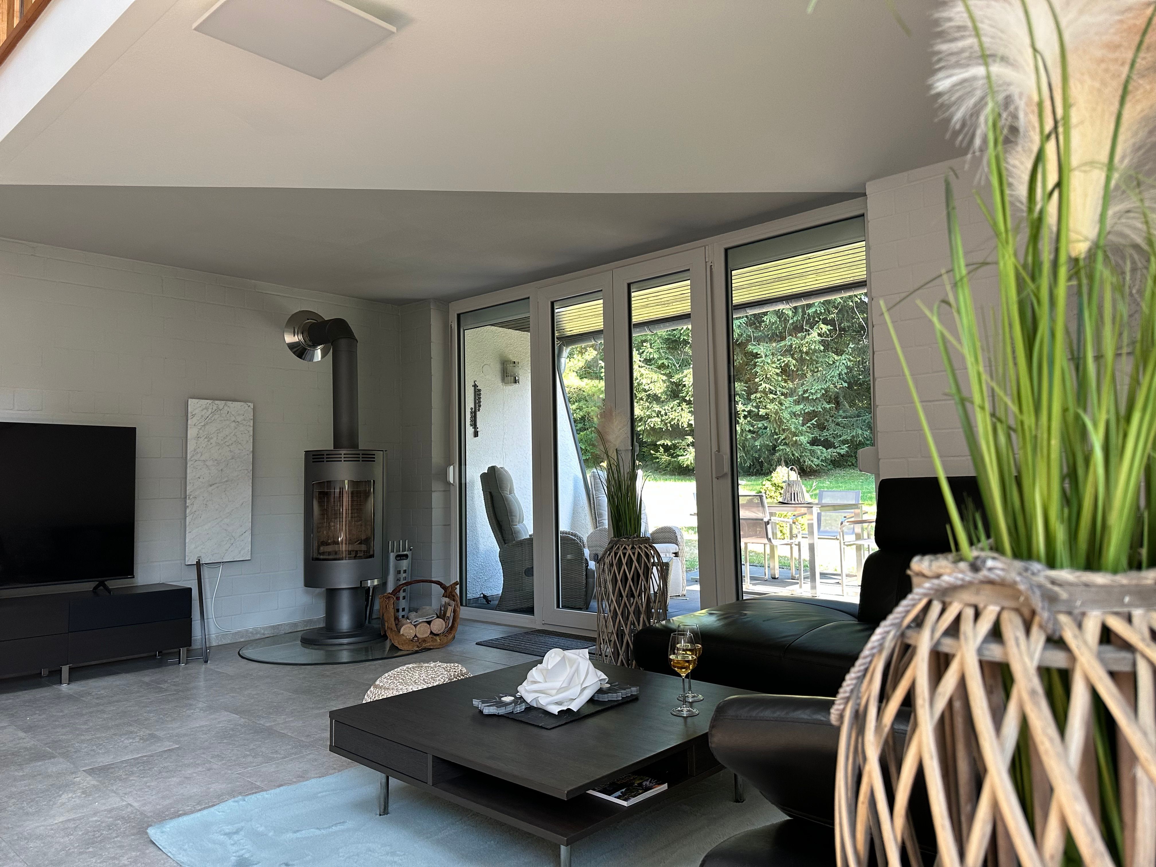 großzügiges Wohnzimmer mit Kamin und SAT-TV (Holz 1 Packung inklusive)