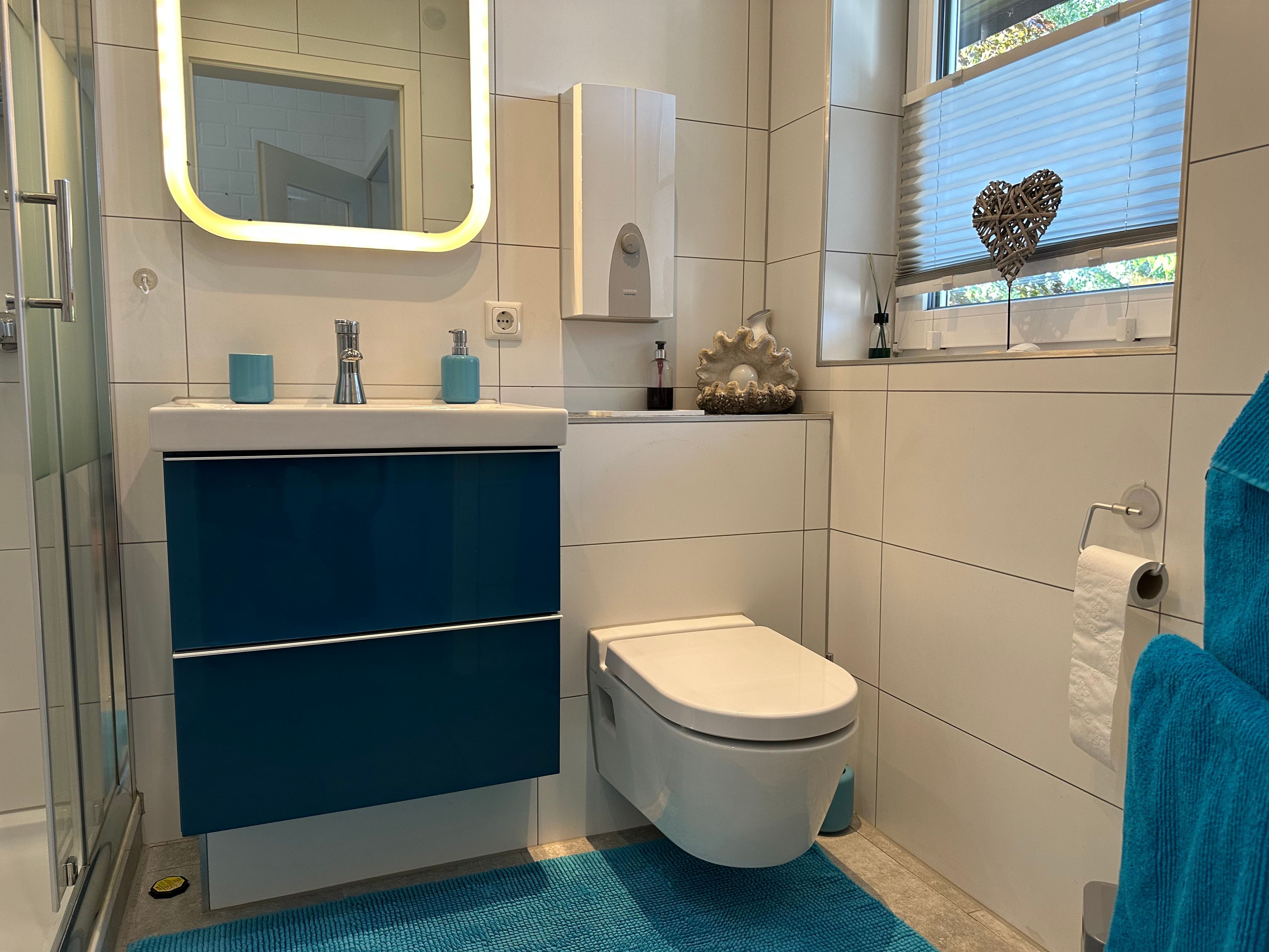 Bad: Handtücher (pro Person 1 großes Badehandtuch, 1 Handtuch) Seife, Duschgel