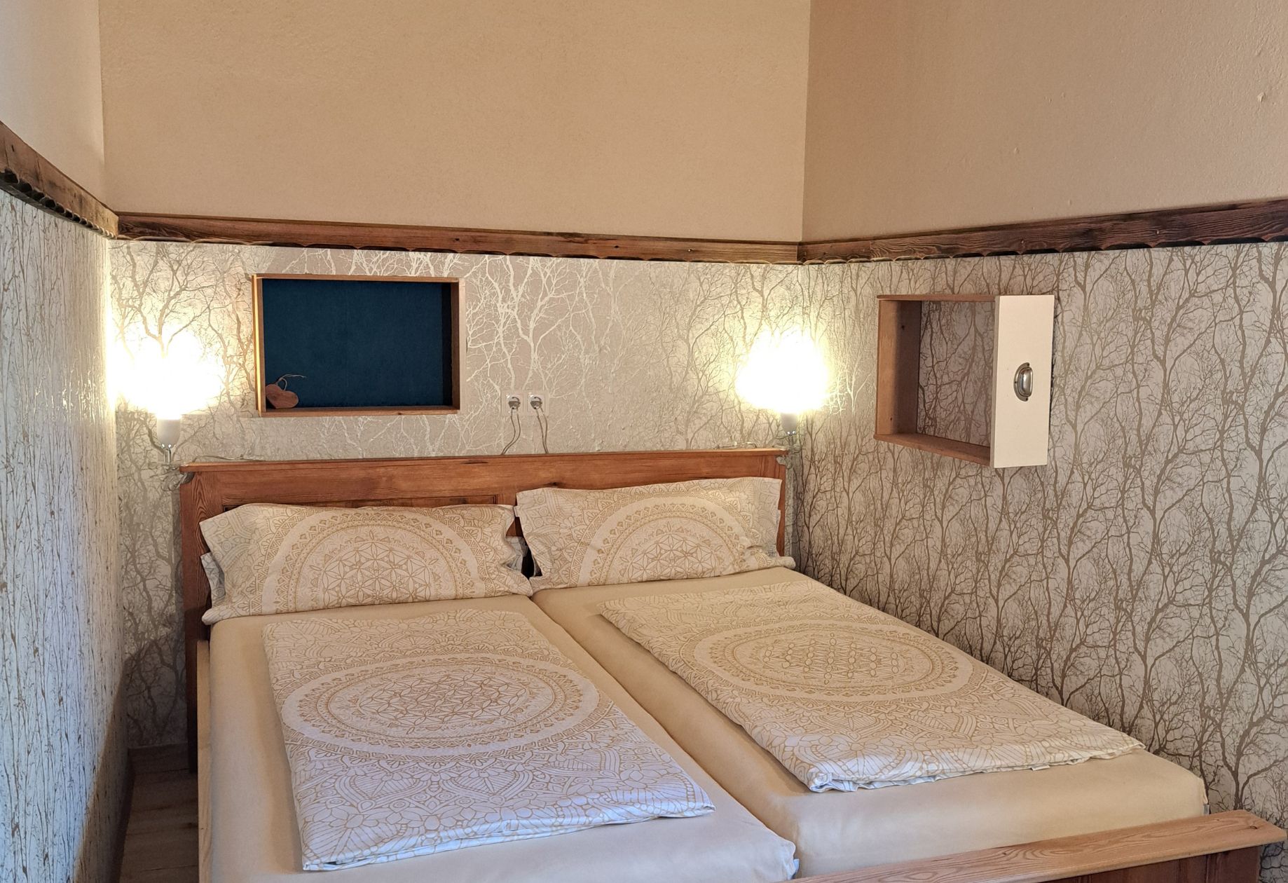 Die Betten im Schlafzimmer sind mit dem orthopädischen Bettensystem von Wenatex ausgestattet - weil uns ein erholsamer Schlaf wichtig ist.