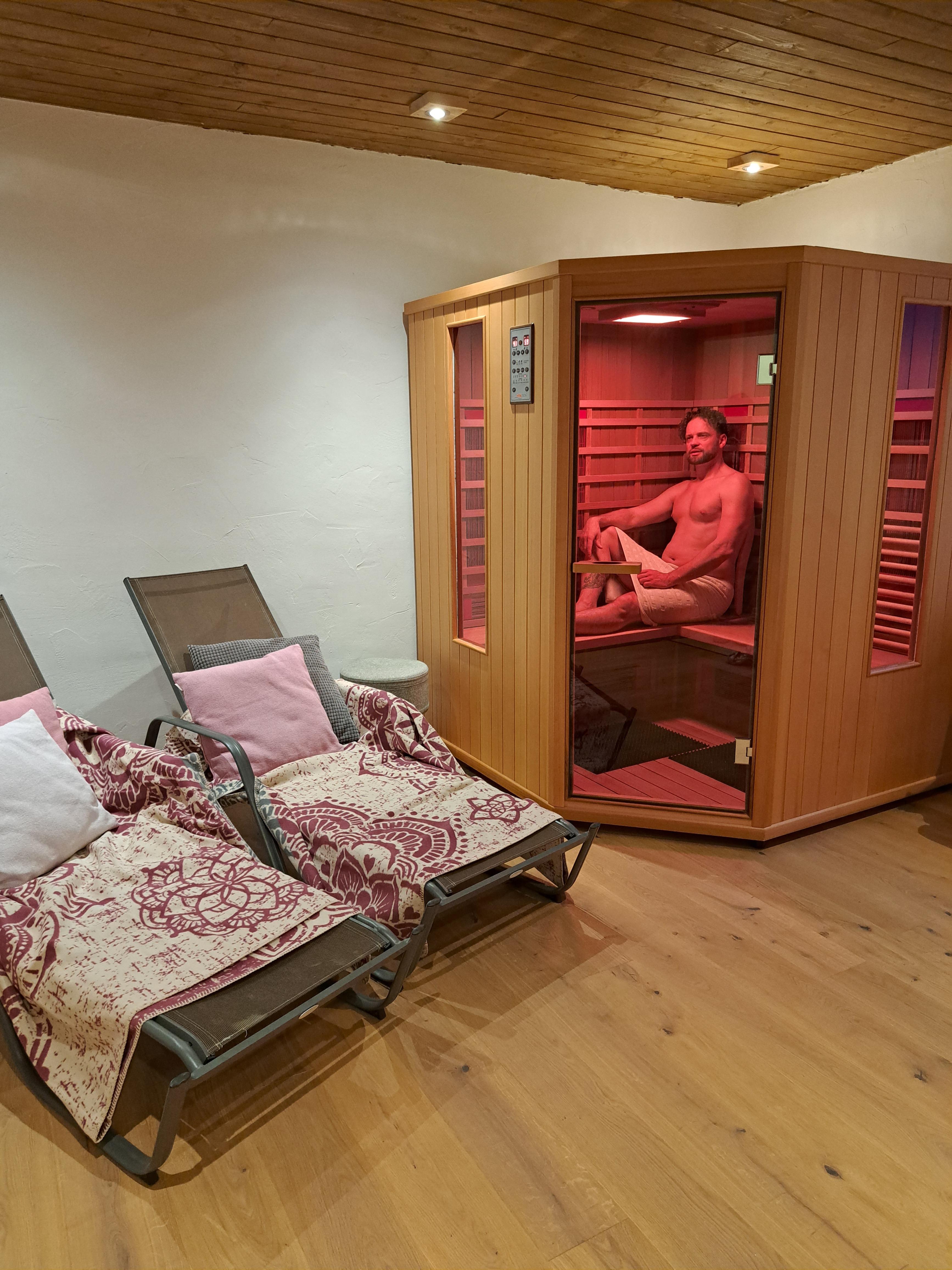 Der kleine Wellnessbereich mit der Infrarotsauna, dem funktionellen Fitnessraum mit vers. Trainingsgeräten und die hauseigene Massagepraxis sind weitere Highlights.