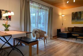 Willkommen in unserer liebevoll eingerichteten Einliegerwohnung – der perfekte Rückzugsort für erholsame Tage. Die gemütliche Wohnung befindet sich in einem Einfamilienhaus und verfügt über einen separaten Eingang für maximale Privatsphäre. Genießen Sie Ihr Frühstück auf der sonnigen Terrasse, entspannen Sie auf der Liegewiese oder machen Sie es sich auf den Sonnenliegen gemütlich. Ein Parkplatz direkt auf dem Grundstück sorgt für zusätzlichen Komfort. Die moderne, voll ausgestattete Einbauküche lässt keine Wünsche offen: Geschirrspüler, Umluftbackofen, Kühl-/Gefrierkombination, Dunstabzugshaube, Wasserkocher, Kaffeemaschine und Handmixer stehen Ihnen zur Verfügung. Direkt angrenzend lädt ein gemütlicher Essplatz zum Verweilen ein.