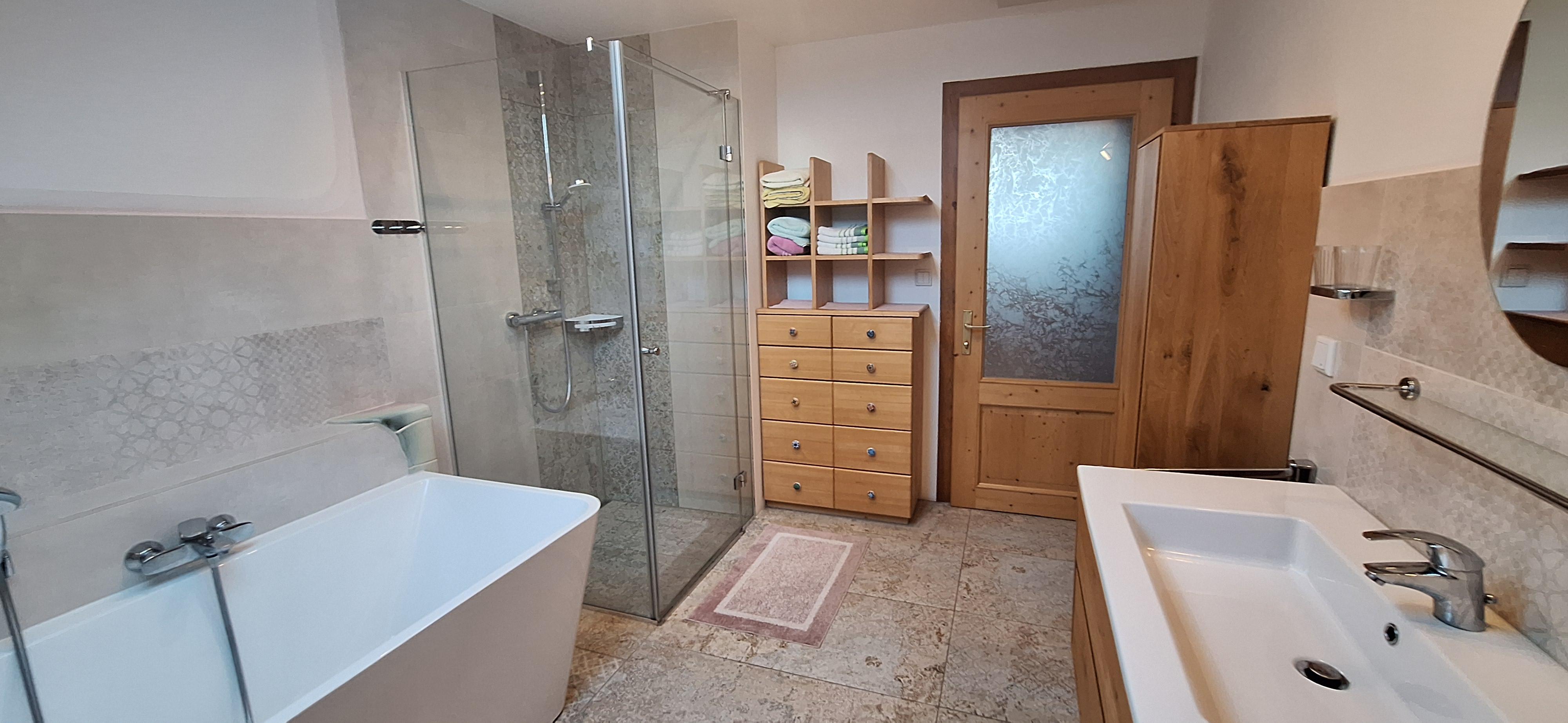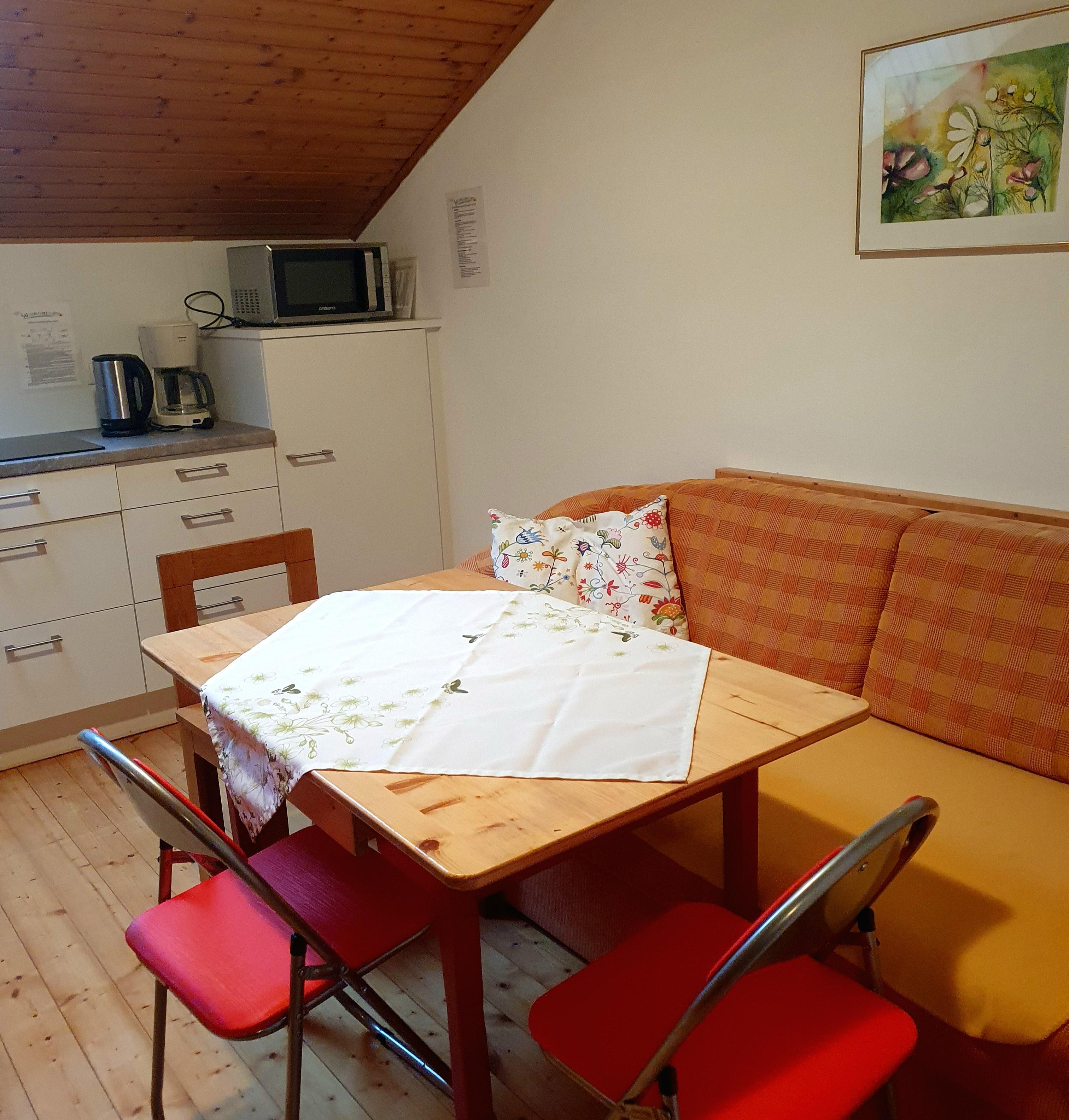 Unser Apartment Waltraud bietet auf 54 m² Platz für 2 bis 5 Personen. Die Ferienwohnung verfügt über 2 getrennte Schlafzimmer (1x Dreibettzimmer mit Doppel- und Einzelbett sowie 1x Doppelzimmer) und eine vollausgestattete Küche (E-Herd, Spülmaschine, Kaffeemaschine, Wasserwocher, Mikrowelle mit Backofenfunktion, etc.) mit Sitzecke und Sat-TV sowie ein Badezimmer mit Doppelwaschbecken, Badewanne, Dusche und WC. Kostenloses W-Lan im ganzen Appartement.