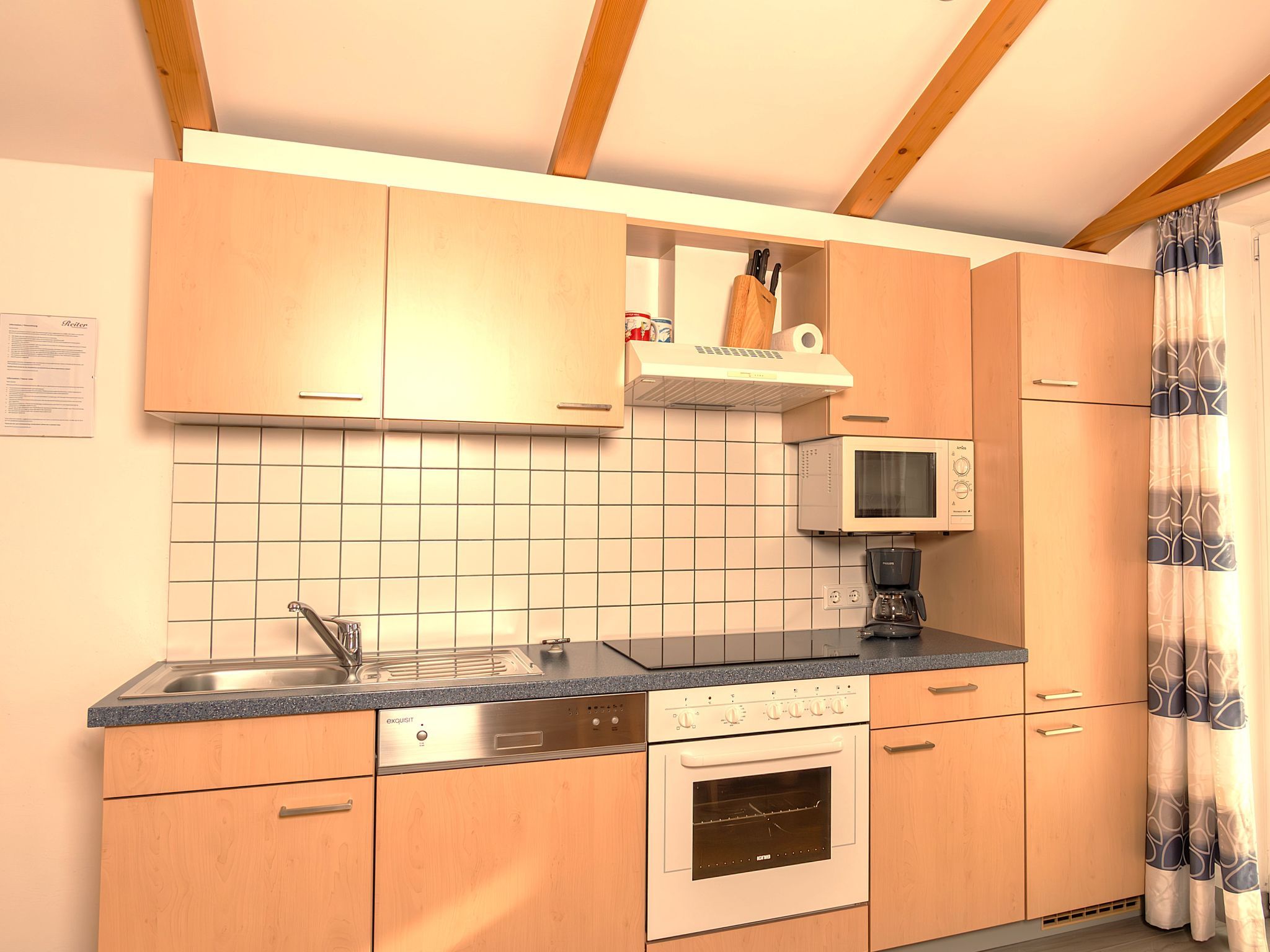 Apartement A, 2-Zimmer-Wohnung 50 m2. Geschmackvoll und gemütlich eingerichtet: Eingang. Wohn-/Esszimmer mit 1 Doppeldiwanbett, Esstisch und Sat-TV (Flachbildschirm). 1 Doppelzimmer. Offene Küche (Backofen, Geschirrspüler, 4 Glaskeramikplatten, Wasserkocher, Mikrowelle, Tiefkühler). Ausgang zum Balkon. Dusche, sep. WC. Heizung. 50408-000668-2020