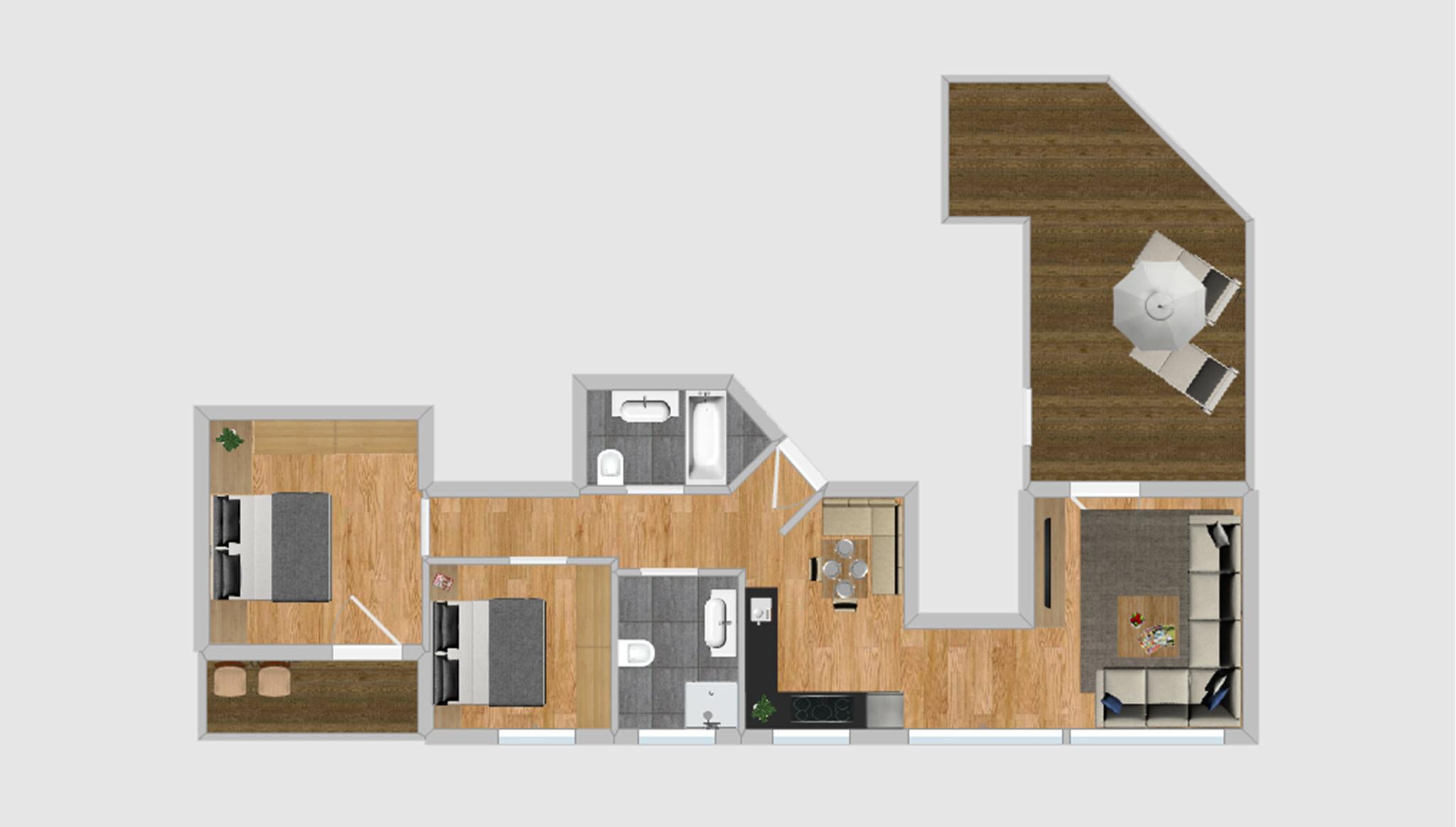 Charmant eingerichtet bietet das Appartement Elisabeth eine große Küche mit einem Esstisch und gemütlicher Eckbank einen geschmackvoll eingerichteten Wohnraum mit Sat TV und Radio, sowie 2 großzügige Schlafzimmer.