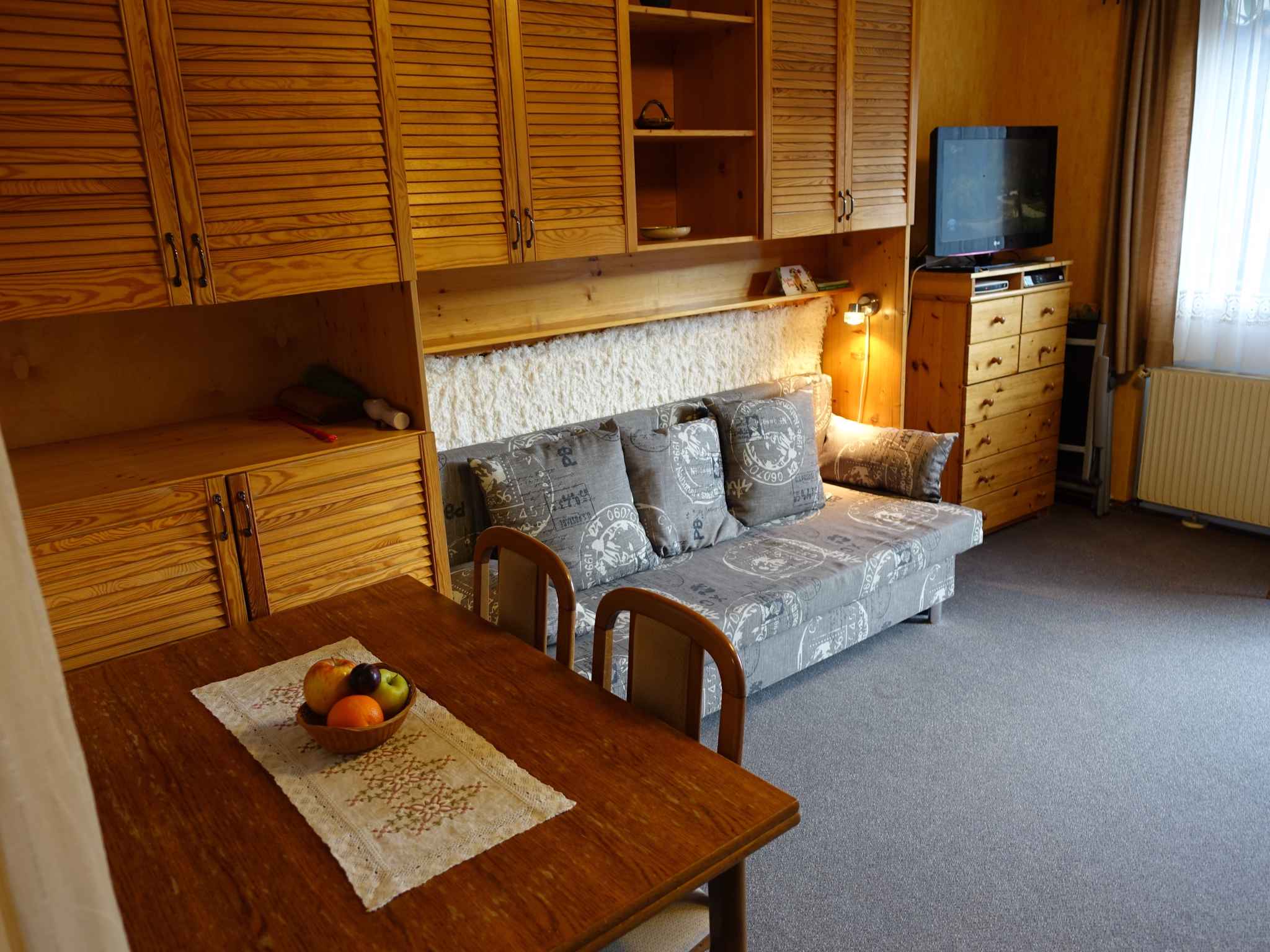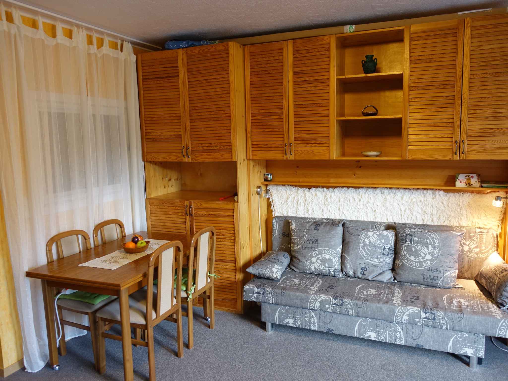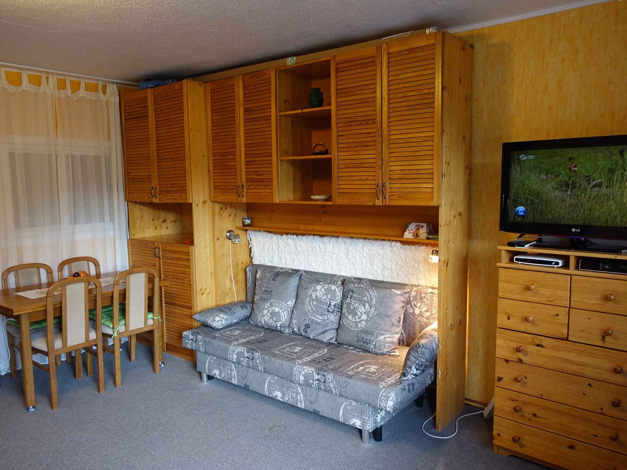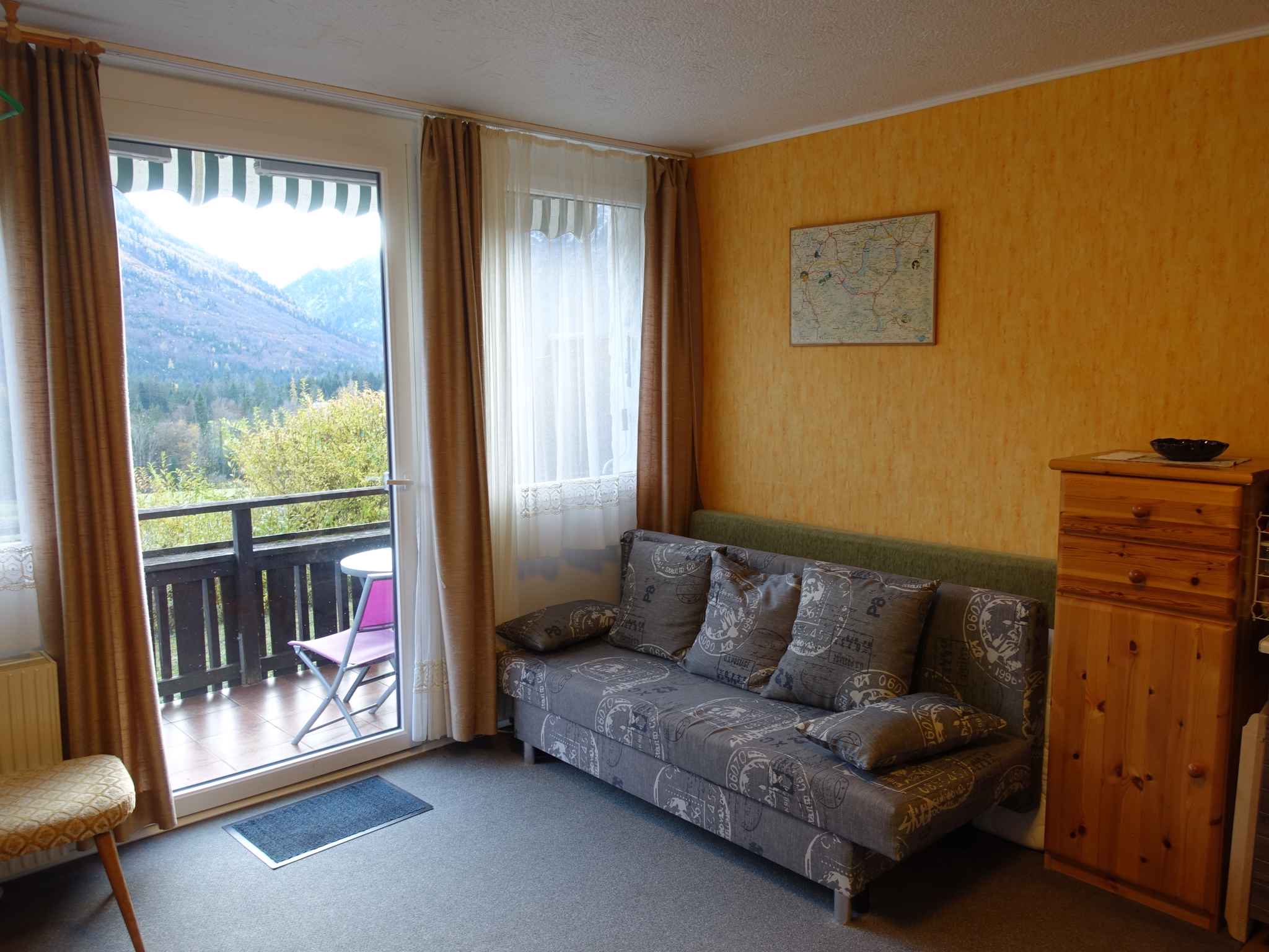 Das Studio befindet sich auf einem offenen Gartengrundstück mit Wiese, Blumen und Sträuchern. Der Vermieter wohnt nicht im Haus oder auf dem Grundstück. Ein Innenpool (10 m x 5 m, Tiefe 1,4 m) steht Ihnen zur gemeinsamen Nutzung zur Verfügung. Das Wellnessangebot umfasst eine Sauna.Lage: Bad Aussee. Das Studio befindet sich in einem Apartementhaus und ist zweckmäßig und im typischen Landesstil eingerichtet. Das Grundstück liegt in einer FerienHaus-Siedlung am Ortsrand. Auch wegen des Ausblicks auf die Berge und der ruhigen Lage ist das Domizil beliebt. Die Zufahrt zum Grundstück erfolgt über eine asphaltierte Nebenstraße. Öffentliche Parkplätze befinden sich auf der Straße vor dem Haus. Die nächste Einkaufsmöglichkeit ist 1000 m entfernt, Restaurant 200 m und Ortszentrum 3 km. Bahnhof, Hallenbad jeweils 3 km in Bad Aussee. Thermalbad in Narzissenbad 2 km.Im Sommer: Sommerbergsee in Bad Aussee 3 km. Weitere Sport- und Freizeitangebote warten auf Sie in der Umgebung. Zum Beispiel Bad Aussee: Golf 200 m und Tennis 2 km. Minigolf in Bad Mitterndorf 15 km. Tauchen in Hallstatt 15 km.Im Winter: Der nächste Skilift befindet sich in 15 km Entfernung in Altaussee. Das nächstgelegene Skigebiet Loser . Weiterhin gibt es eine Eislaufbahn in Bad Aussee, 2 km.