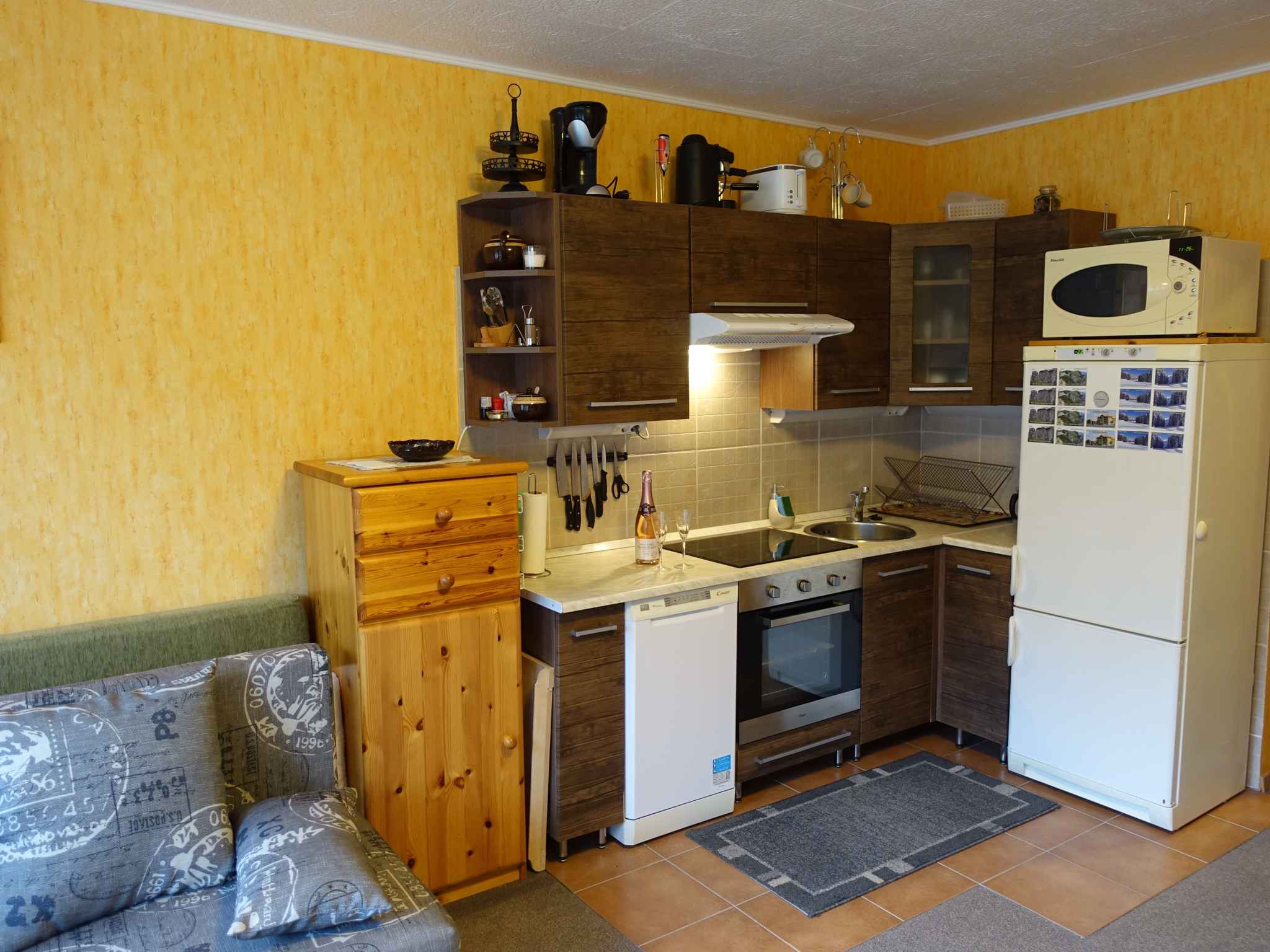 Ihr Studio erstreckt sich über 1 Etage, 1 Zimmer, ist 35 qm groß und ist für maximal 4 Personen geeignet. An kälteren Tagen kann Ihr Studio beheizt werden mit Zentralheizung (Öl). Szükség szerint nyáron is van fűtés. Der Eingang ist im Erdgeschoss und führt über eine Außentreppe direkt in den Vorraum mit Türen zu allen Räumen. Die Zimmer teilen sich wie folgt auf: Wohn/Schlafzimmer mit 1 Doppelbett und 2 Zusatzbetten auf Doppelausziehcouch, Essecke, TV, Video und DVD. Die Essecke bietet Platz für 6 Personen. Sie haben Zugang zur 6 qm großen Terrasse mit 1 Tisch, 4 Stühlen und 1 Sonnenliege. Amerikanische Küche mit TV, Geschirrspüler, Elektroherd (Cerankochfeld, 4 Platten), Backofen, Dunstabzugshaube, Kühlschrank (Eisfach), Mikrowelle, Kaffeemaschine, Toaster und elektrischem Wasserkocher. Sie haben Zugang zur Terrasse. Bad mit Dusche, 1 Waschbecken, WC, Föhn und Waschmaschine. Darüber hinaus ist Ihr Studio mit WLAN- Internetzugang, Gitterbett, Kinderstuhl, Bügeleisen und Waschmaschine ausgestattet. TV- bzw. Rundfunksender können per Kabel empfangen werden.