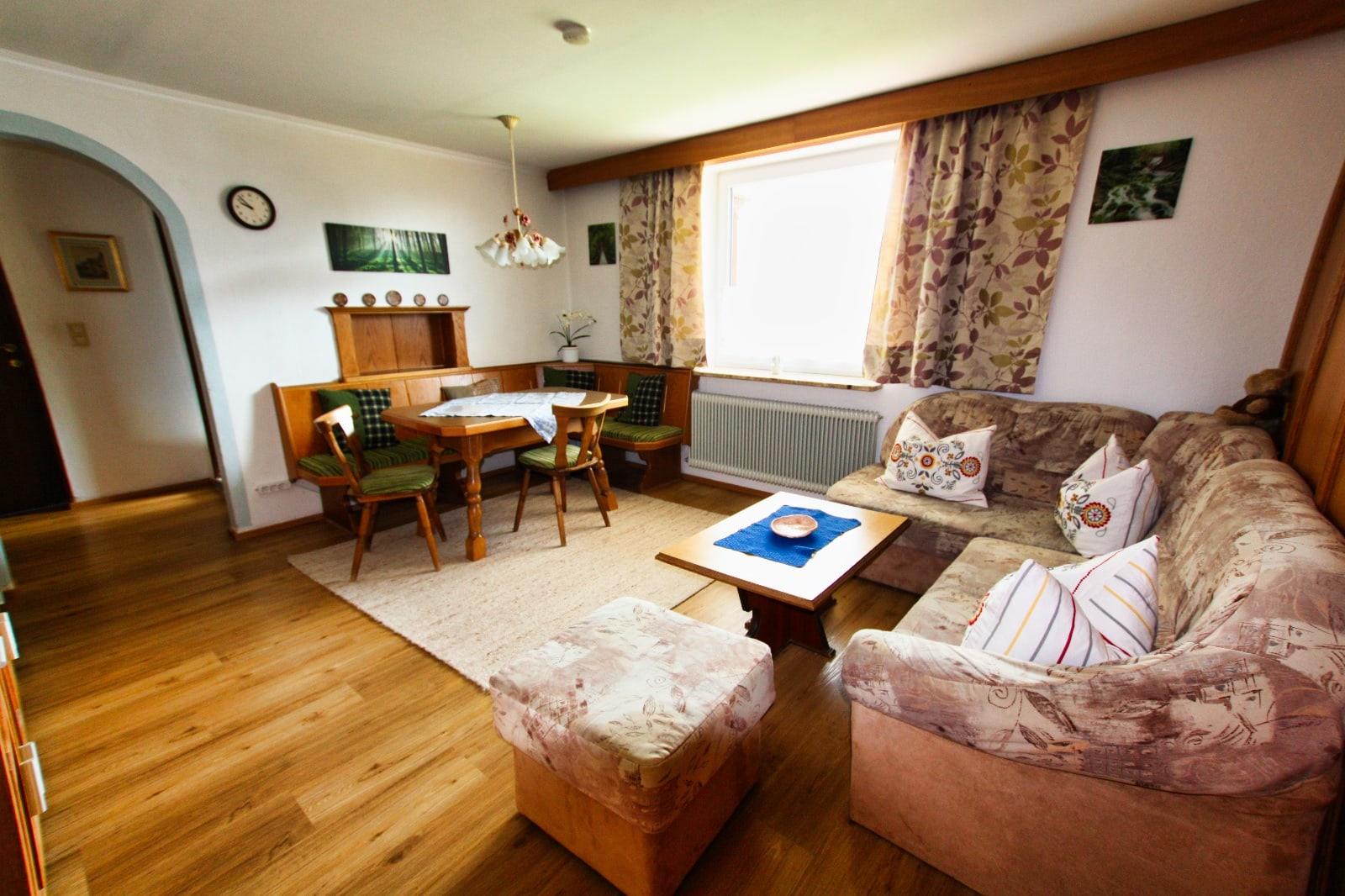 Das 3-Raum-Appartement für 2 bis 5 Personen in unserem Landhaus Isser liegt idyllisch in einem ruhigen Wohngebiet am Waldrand und garantiert mit dieser Lage bereits erholsame Ferien in der malerischen Landschaft der Region Seefeld. Zu Fuß sind Sie dennoch in nur 10 Minuten im Seefelder Zentrum, um in einem der gemütlichen Restaurants und Cafés zu verweilen, zahlreiche Geschäfte zu erkunden oder verschiedene Veranstaltungen zu besuchen.