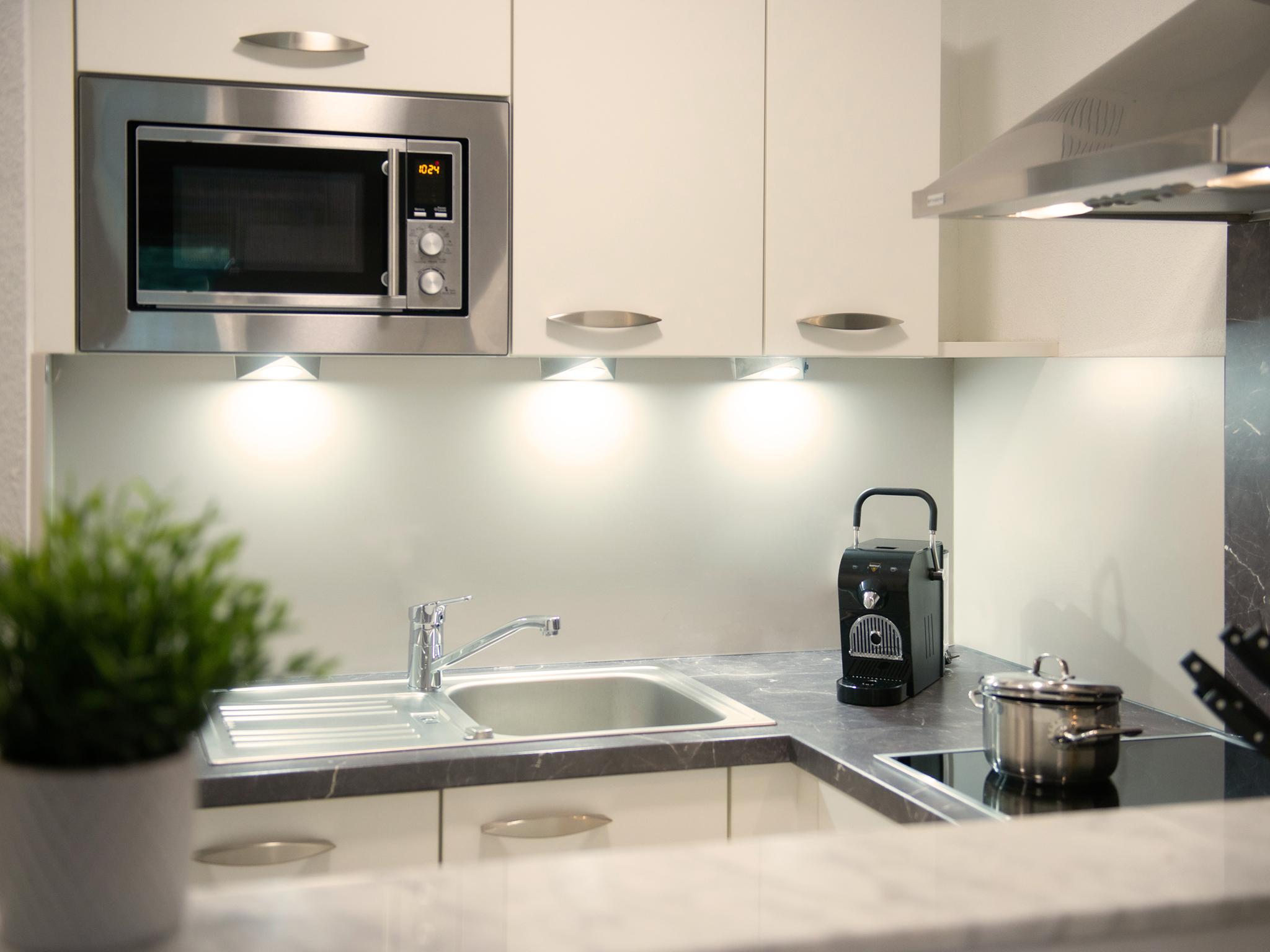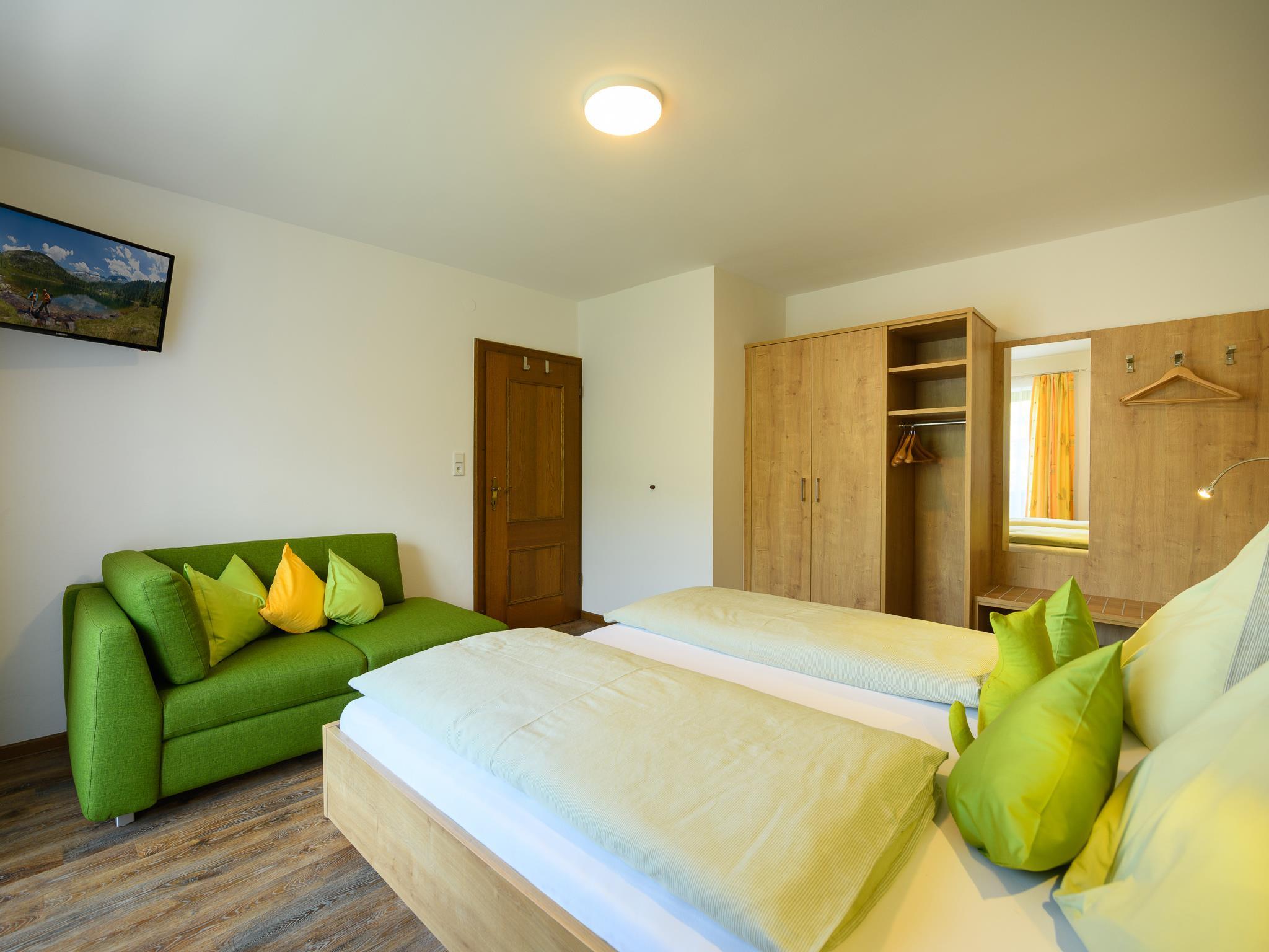 Die Wohnküche ist für maximal 8 Personen ausgelegt. Bei Bedarf kann die Wohnung um ein angrenzendes Doppelzimmer erweitert werden. Das Zimmer verfügt über DU/WC, Kabel Flat-TV 32“, gratis W-LAN sowie einen Balkon.
