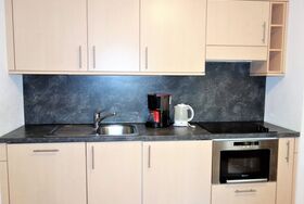 Komfortable 3*-Wohnung mit 49 m2. Wohnzimmer mit Balkon, Flachbildfernseher mit Kabel-TV und WLAN. Offene Küche mit Mikrowelle, Geschirrspüler und Filterkaffeemaschine.