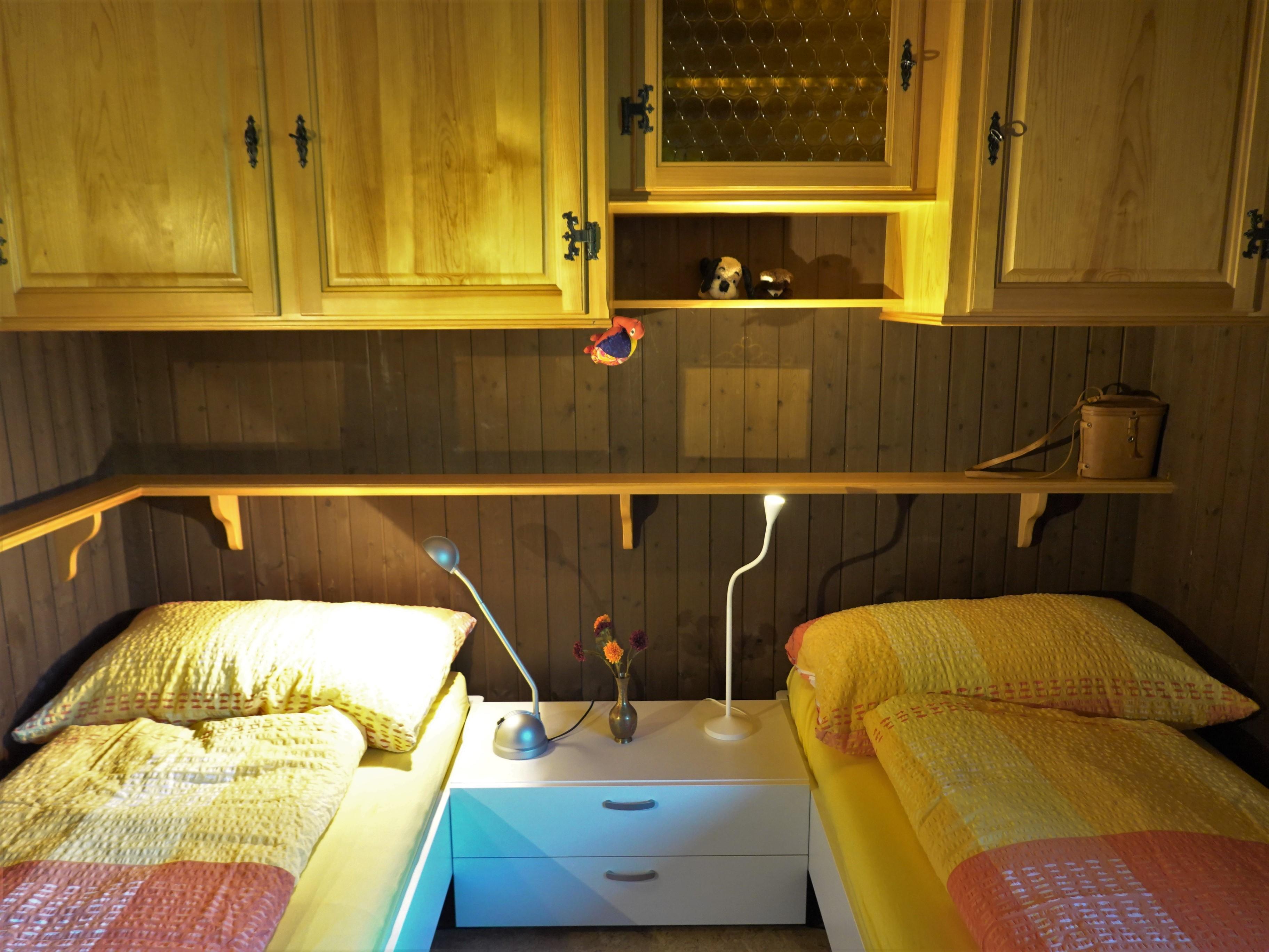 Ein Schlafzimmer mit zwei Einzelbetten, ein Schlafzimmer mit einem komfortablen Bettsofa für zwei Personen total = 4 Betten.