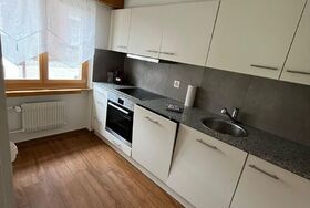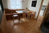 Küche und Essbereich: grosse Küche mit Kaffeemaschine, Toaster, Fondue, Raclette, Tiefkühlfach, Kinderhochstuhl, Eckbank mit Tisch, kein Wasserkocher vorhanden