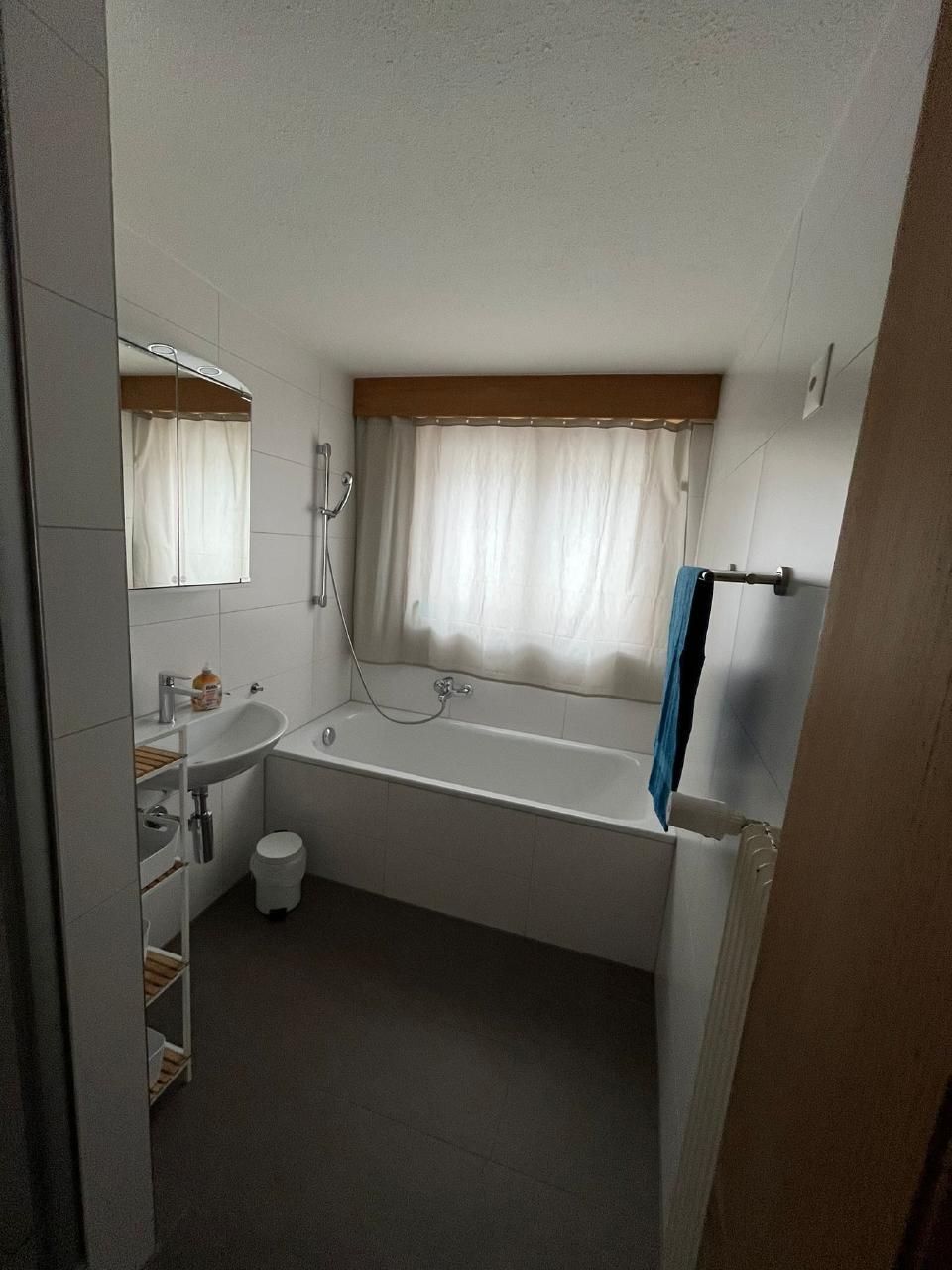 Badezimmer: Dusche und Badewanne, separates WC, Föhn, Waschmaschine, Tumbler