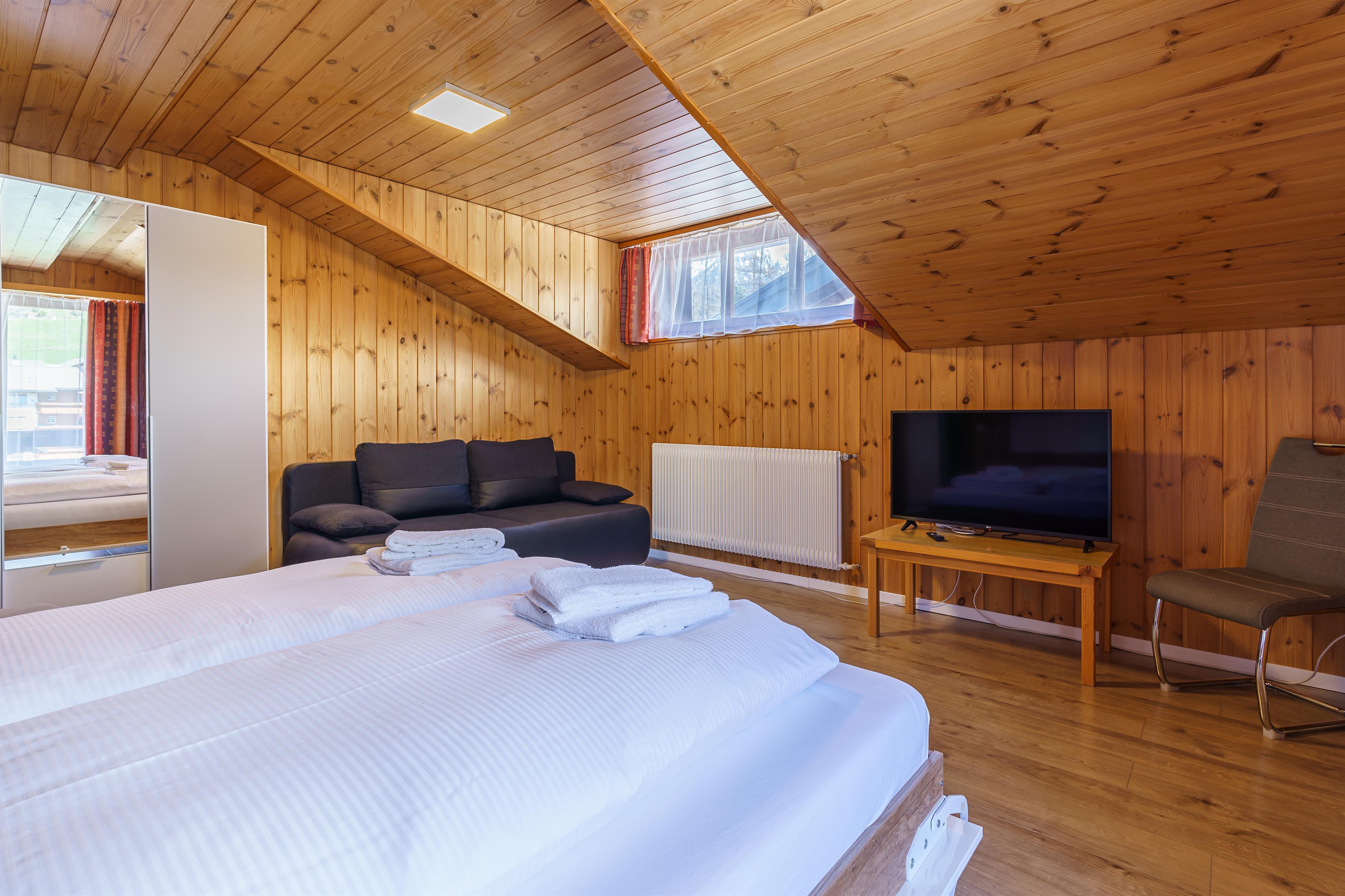 Die 65 m² große Ferienwohnung im Haus Slalom bietet Platz für bis zu 6 Personen und besteht aus zwei Schlafzimmern mit Doppelbetten sowie einem Schlafsofa für 2 Personen im Schlafzimmer. Ein Kleinkind kann ebenfalls problemlos untergebracht werden.