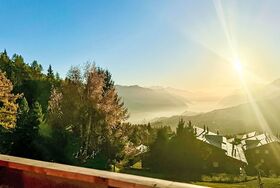 Schöne, gemütliche, komfortable Residenz Les Renardeaux. Am Ortsrand, 1.6 km vom Zentrum von Crans, ruhige, sonnige Lage, 2 km vom See, 1.5 km vom Skigebiet, in einer Sackgasse, Richtung Südwesten. In der Anlage: Fahrstuhl, Skiraum, Zentralheizung, Waschmaschine, Wäschetrockner (zur Mitbenutzung), Trockenraum. Einzelgarage. Einkaufsgeschäft 1.5 km, Supermarkt 1.6 km, Restaurant 750 m, Bäckerei 1.7 km, Bushaltestelle Essampilles 180 m. Golfplatz (18 Loch) 2 km, Skisportanlagen 1.5 km, Ski-Kindergarten 1.4 km, Langlaufloipe 1.3 km. Bekannte Seen in der Umgebung sind gut erreichbar: Lac Grenon 2.2 km, Lac Moubra 3.5 km. Bitte beachten: Gratis Skibus.