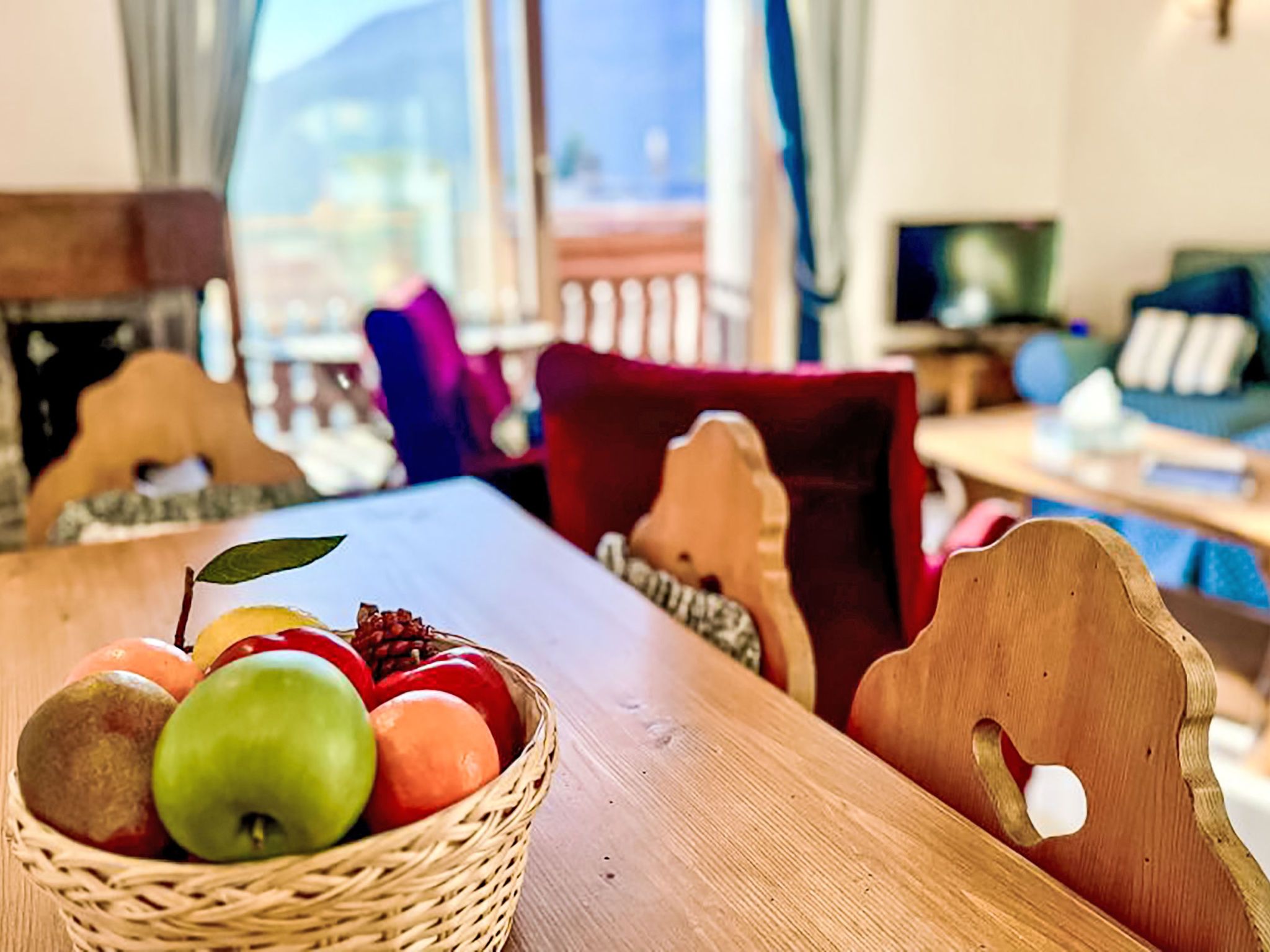 Les Renardeaux 5, 2-Zimmer-Wohnung 60 m2 im 2. Stock. Geräumig und hell, sehr schön und geschmackvoll eingerichtet: Wohn-/Esszimmer mit offenem Kamin und Kabel-TV. Ausgang zum Balkon. 1 Zimmer mit 2 Betten (90 cm, Länge 200 cm), Bad/Bidet/WC. Ausgang zum Balkon. Offene Küche (Backofen, Geschirrspüler, 4 Glaskeramikplatten, Toaster, Wasserkocher, Mikrowelle, Tiefkühler, elektrische Kaffeemaschine, Kapseln für die Kaffeemaschine (Nespresso) extra). Sep. WC. Parkettboden. Grosser Balkon 18 m2, Südwestlage. Balkonmöbel. Herrliche Sicht auf die Berge und das Tal. Zur Verfügung: Haartrockner. Internet (WLAN, gratis). Garage. Bitte beachten: Nichtraucher-Unterkunft.